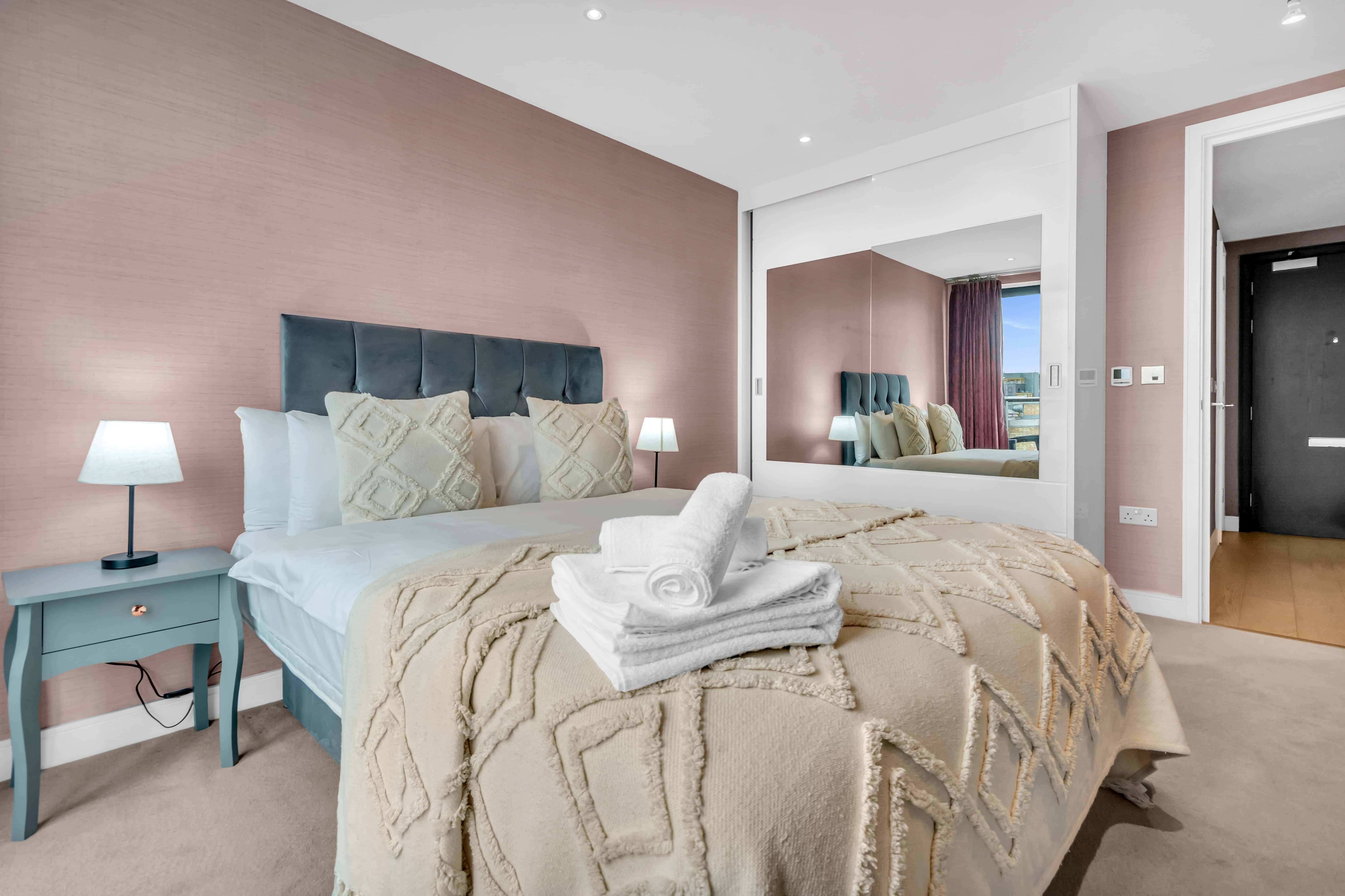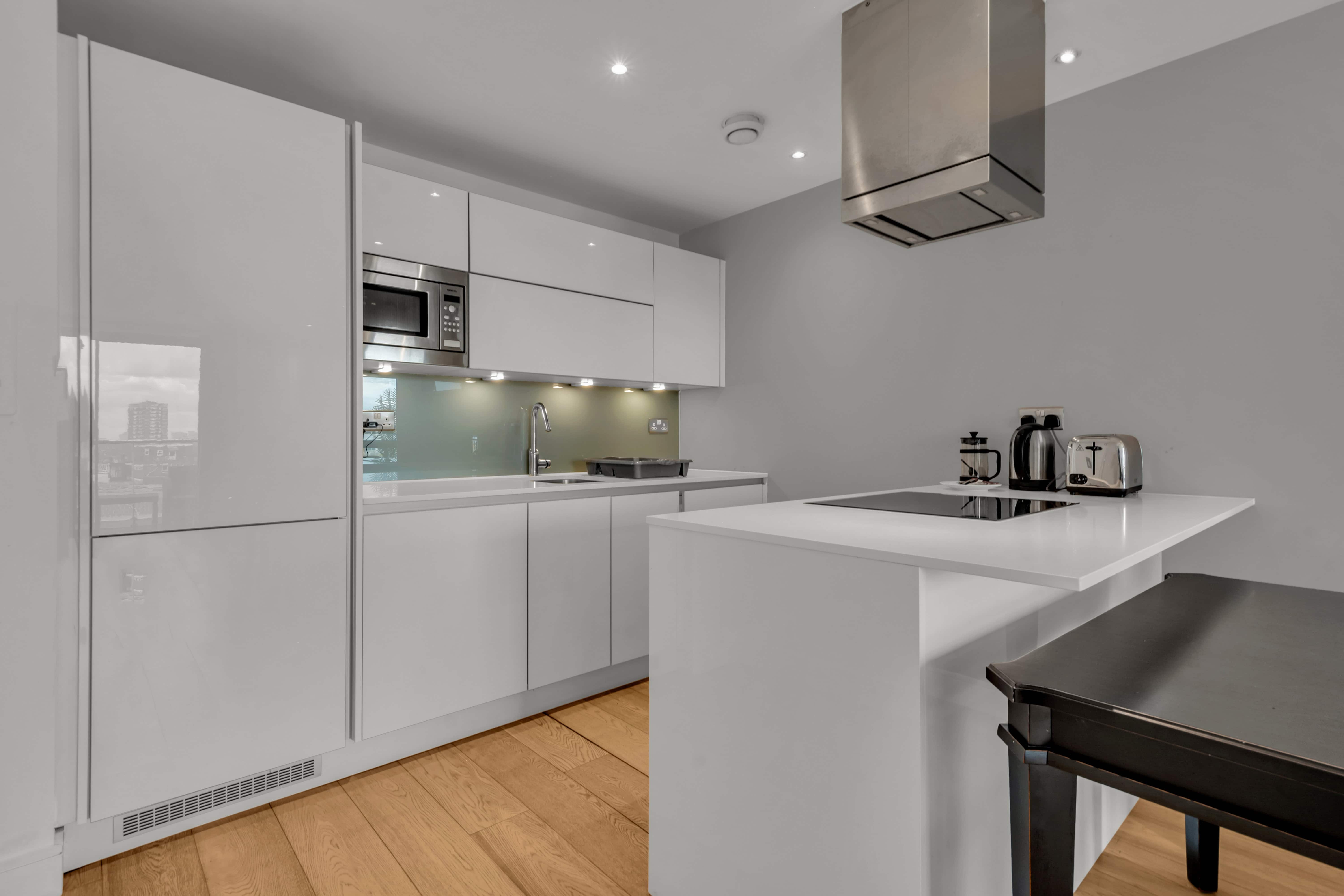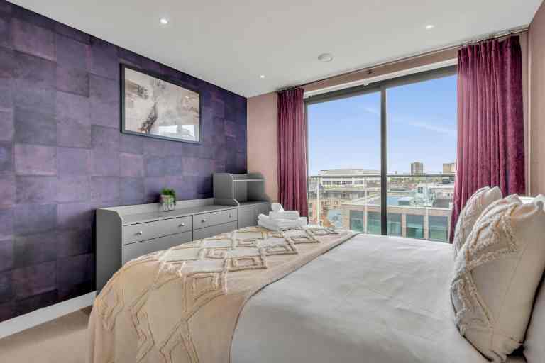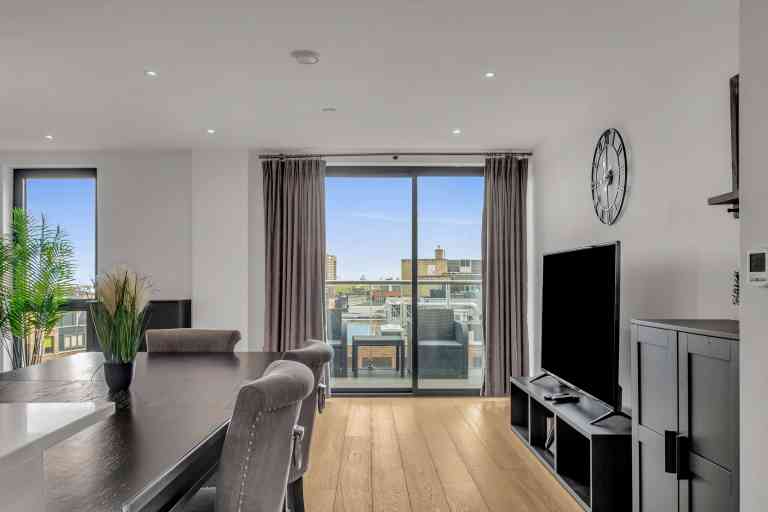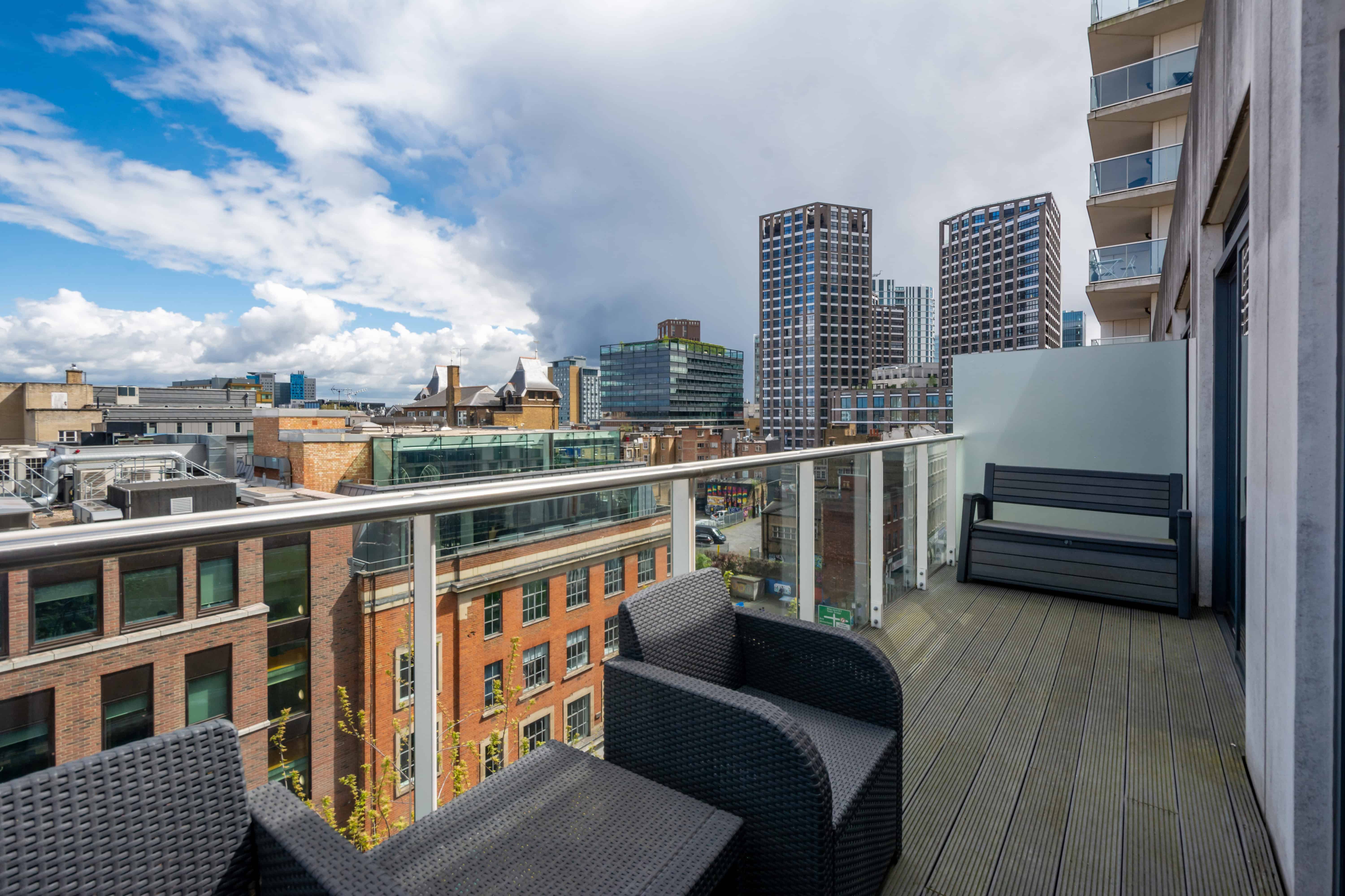Aldgate Commercial Street Apartments offer a refined and stylish one bedroom living space in one of London’s most dynamic districts. Thoughtfully designed with a blend of minimalist and boho interiors, the apartment features underfloor heating, a modern kitchen, and a generously sized private balcony—perfect for relaxed breakfasts or evening dining outdoors. Guests also have access to an on site gym (entry fee applies), and fast Wi-Fi makes it easy to work or unwind. Ideal for solo professionals, couples, or corporate travellers, the apartment delivers hotel like convenience with the privacy and flexibility of home.