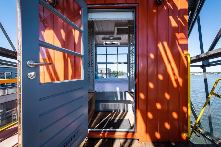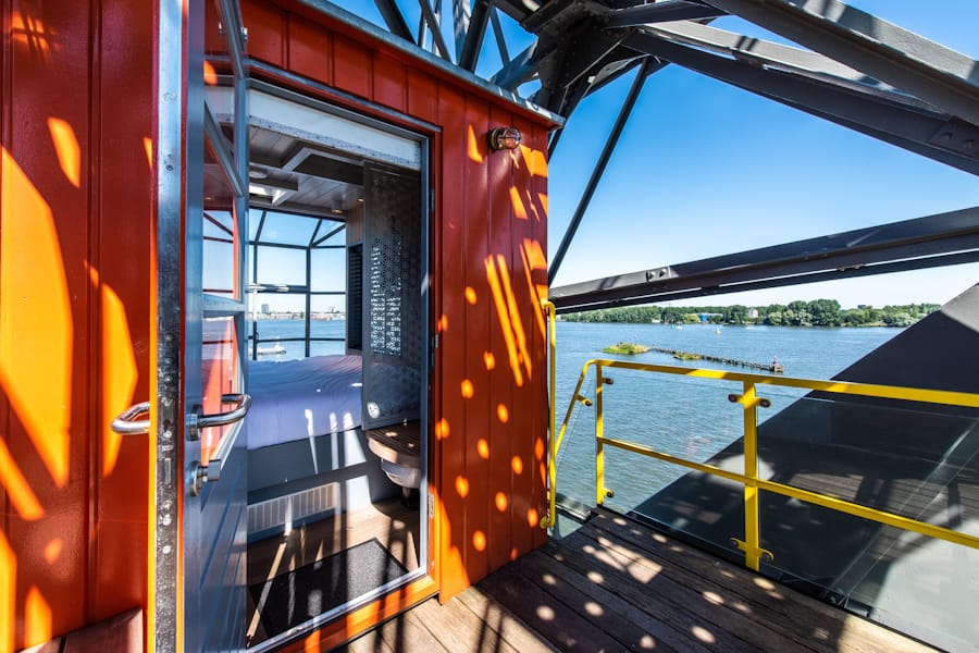 Perched 46 metres above the IJ River on KNSM Island, Amsterdam Harbour View Apartments offer a truly unique and unforgettable stay inside a repurposed 1957 harbour crane. This striking piece of industrial heritage has been transformed into a luxurious three-storey apartment that blends historical charm with contemporary design. The apartment’s elevated position provides sweeping panoramic views of the river, the Amsterdam skyline, and the surrounding Eastern Docklands. Guests can enjoy a tranquil yet central location, with the creative neighbourhood offering art galleries, boutique shops, and trendy cafés just minutes away. Public transport is easily accessible, including nearby bus and ferry stops, allowing visitors to explore Amsterdam’s city centre and its major attractions, such as the Anne Frank House, Rijksmuseum, and Dam Square, with ease.
