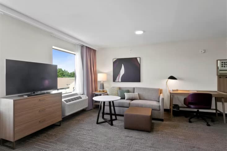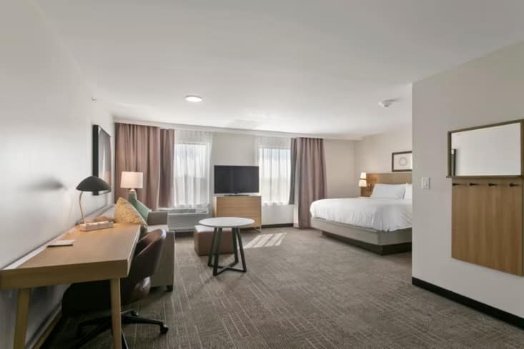 Guests enjoy complimentary Wi-Fi, a daily hot breakfast buffet, evening socials (Monday through Wednesday), a 24-hour fitness centre, and guest laundry. We’re also a pet-friendly aparthotel in Atlanta—perfect for extended stays with your whole crew.