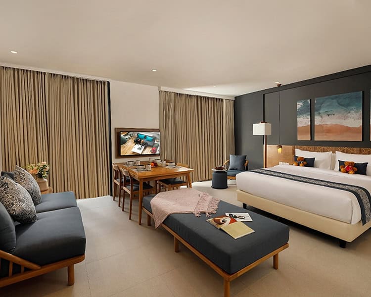 Bali Berawa Beach Aparthotel is a contemporary aparthotel in Canggu’s laid-back Berawa neighbourhood, an easy stroll from the sand and surf of Berawa Beach. It’s positioned for the best of the coast-meets-cafe lifestyle: morning surf checks, sunset walks, and quick access to the area’s popular eateries and beach clubs such as Atlas and Finns. While Canggu can be lively, the property itself feels calm and practical, giving you a comfortable base between outings. With Ngurah Rai International Airport around 15 km away, arrivals and departures are straightforward, leaving you more time to enjoy the neighbourhood’s mix of ocean, boutique shopping, and creative energy. Day trips to Seminyak, Tanah Lot, and Ubud are easy from this address.
