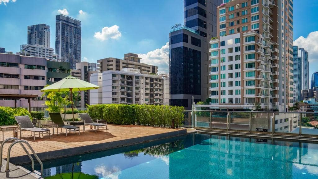Bangkok Benchasiri Park Aparthotel is a contemporary serviced residence located in the lively Sukhumvit district of Bangkok, positioned just steps from Benchasiri Park and close to Phrom Phong BTS Skytrain Station, making it a desirable choice for guests seeking both urban convenience and easy access to green spaces. Its central location places visitors within walking distance of luxury shopping malls, international dining options, boutique cafés, and wellness facilities, while nearby transport connections make exploring greater Bangkok effortless. The surrounding neighbourhood blends cosmopolitan city life with relaxed parkside charm, making it appealing to both leisure travellers and business visitors who value comfort, convenience, and lifestyle amenities.