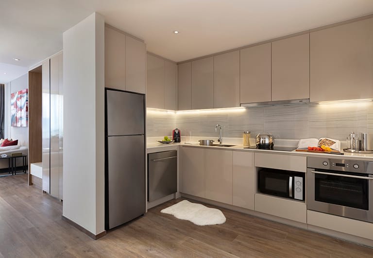 The aparthotel features a range of fully furnished serviced apartments and residences designed for both short stays and extended residencies, with layouts that include stylish studios as well as spacious one-, two-, and three-bedroom units. Each apartment is equipped with practical amenities such as high-speed Wi-Fi, air conditioning, fully fitted kitchens, and in-room laundry facilities, giving guests the flexibility and independence of home-like living. Generous living and dining areas provide inviting environments for relaxation, remote work, or everyday routines, while contemporary interiors and thoughtful design details help create a warm, comfortable atmosphere.