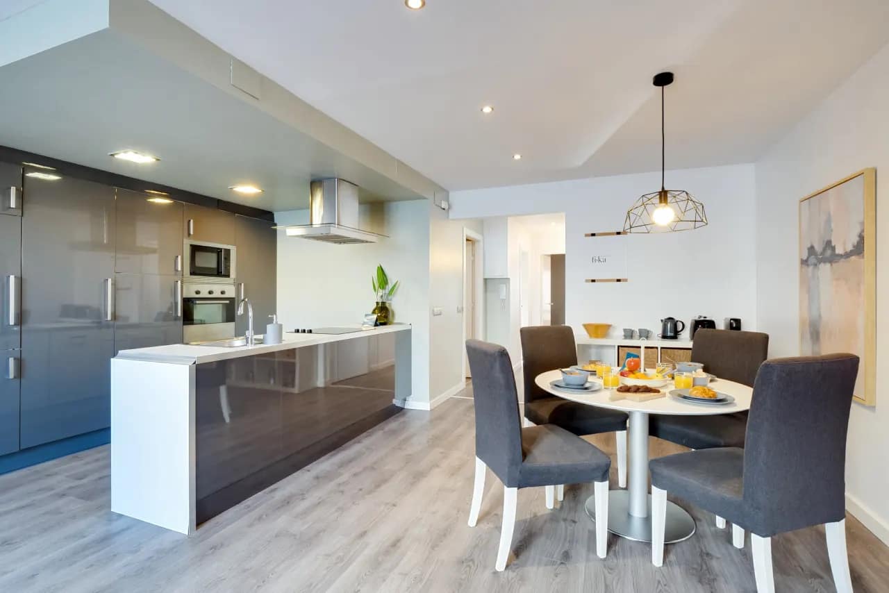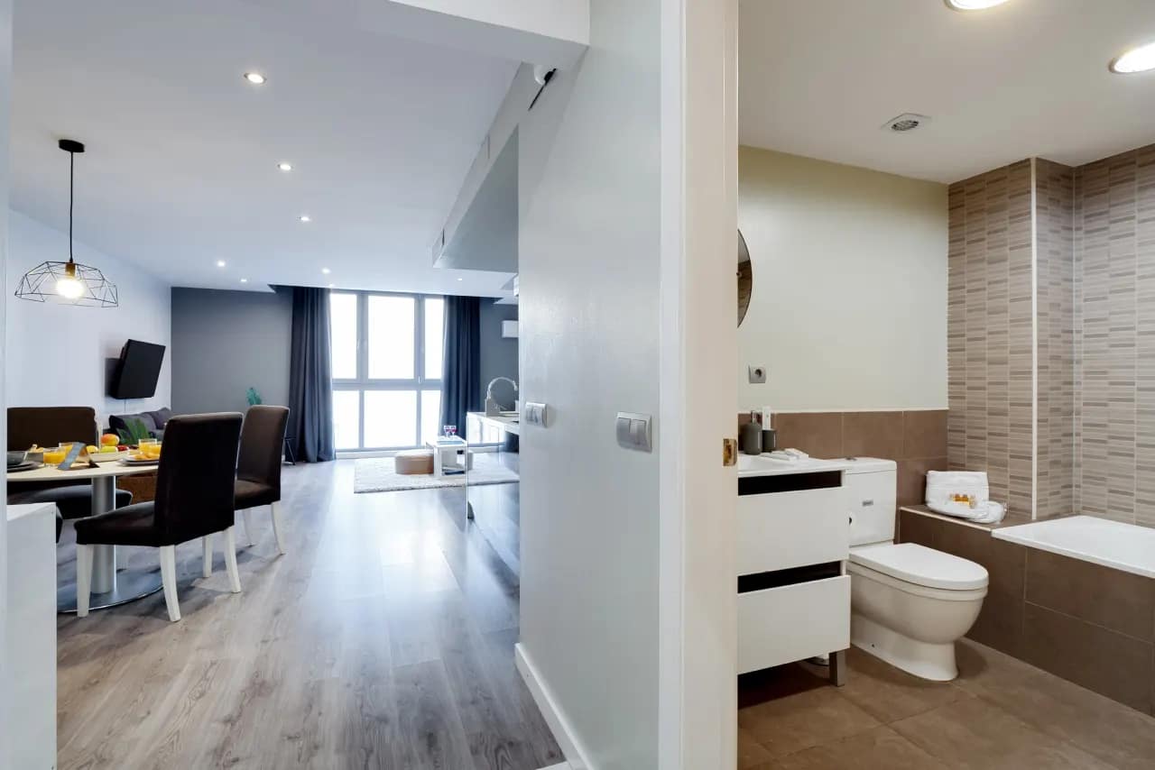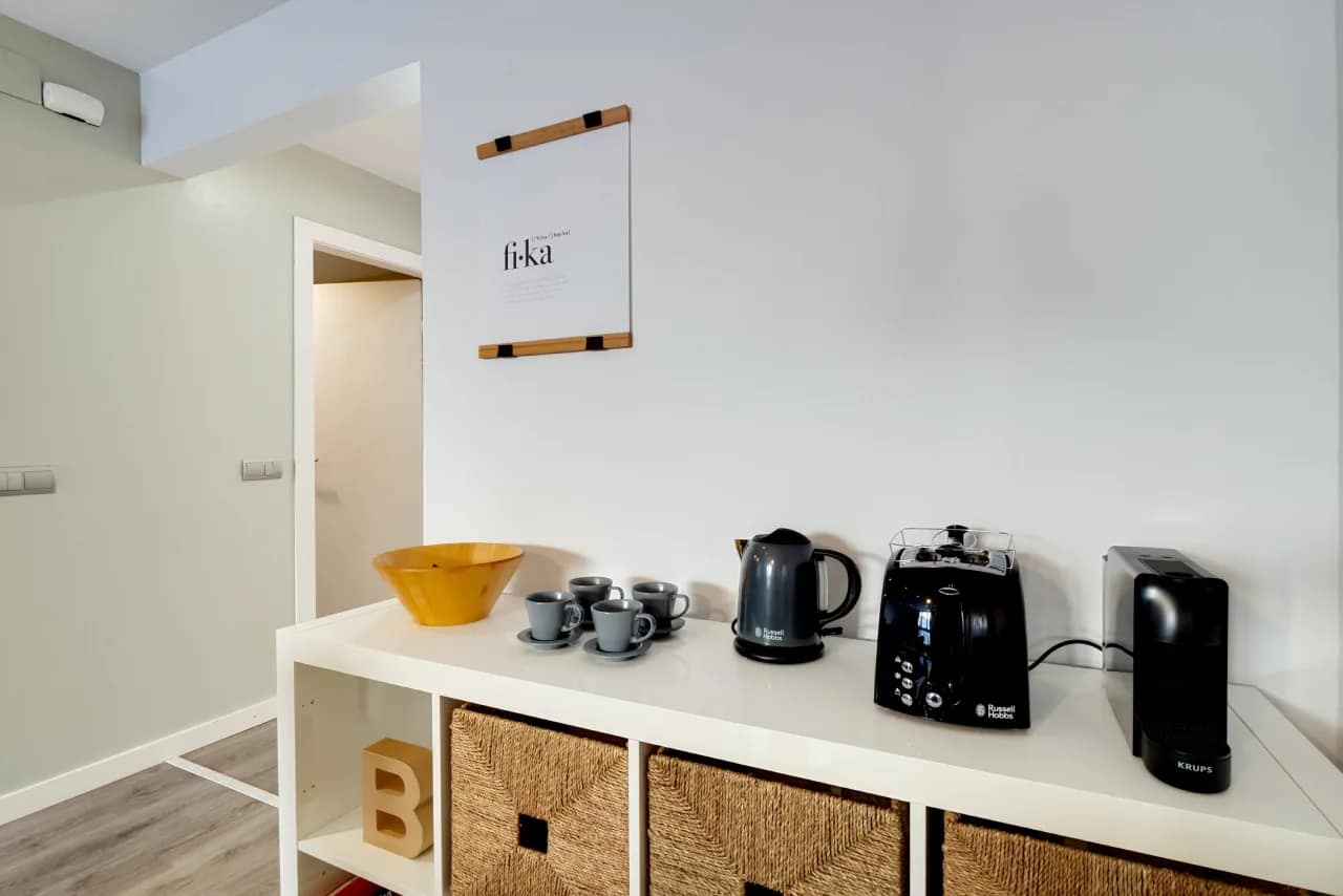 Inside, premium amenities ensure a comfortable and convenient stay. Enjoy free high-speed WiFi, cable TV, a Nespresso machine, high-end toiletries, and plush hotel-quality linens on a snug double bed (please note the bed is narrower than standard). The apartment also features air conditioning, heating, a washing machine, and modern digital key access for a seamless arrival. The fully equipped kitchen includes a refrigerator, microwave, electric stove, and all necessary cookware and utensils, making it easy to prepare your favourite dishes.
