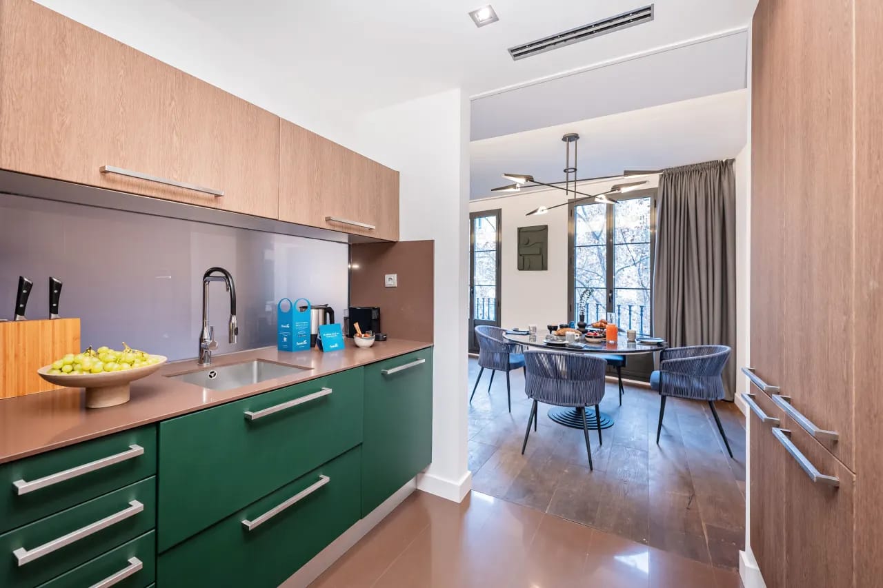 Guests can enjoy a wide range of premium amenities, including free high-speed WiFi, cable TV, luxury bedding, and high-end toiletries. The fully equipped kitchen features a refrigerator, dishwasher, oven, gas stove, and a Nespresso machine for your morning coffee. Families will appreciate thoughtful extras such as baby cots and high chairs upon request, while practical conveniences like a washing machine, ironing facilities, air conditioning, and heating ensure a seamless stay in any season. With its spacious layout, central location, and welcoming design, Barcelona La Pedrera Apartments provide the perfect home base for an unforgettable holiday.