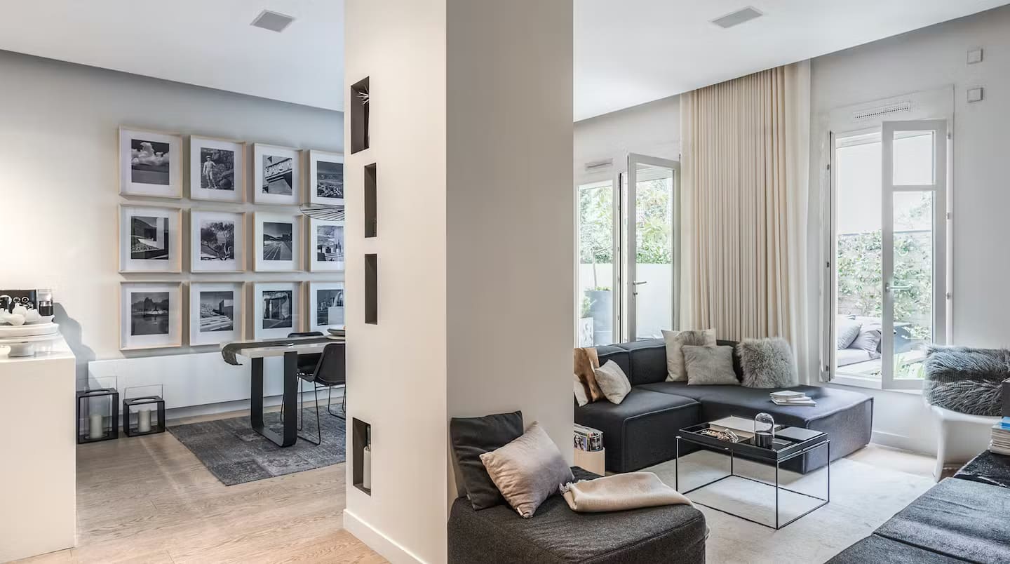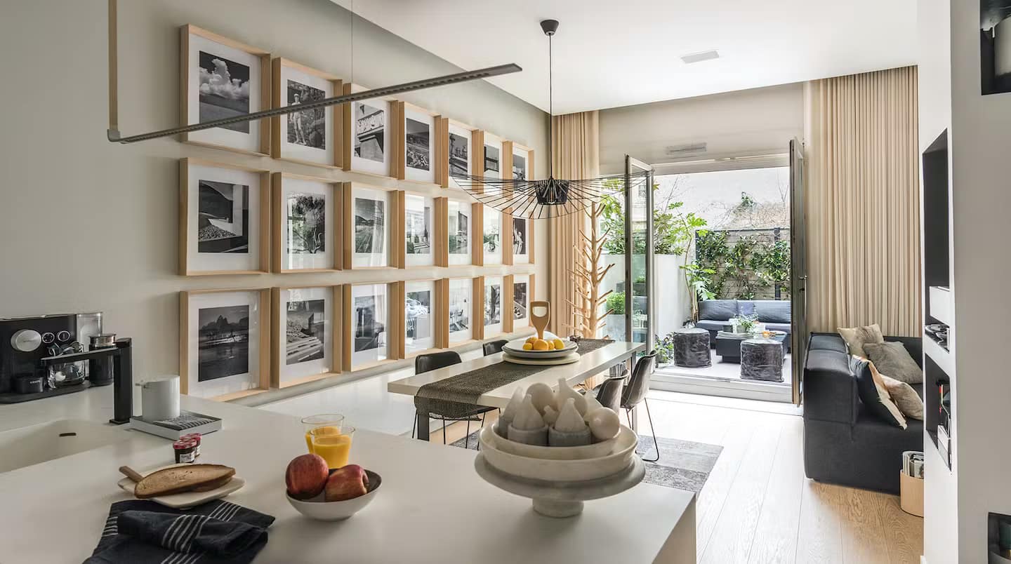 Tucked away in one of Paris’ most vibrant quarters, this Bastille luxury apartment is an elegant and thoughtfully designed space for two. Just a ten-minute walk from the historic Place de la Bastille, it offers a contemporary retreat where refined design meets practical comfort. Step inside and you’re greeted with a stunning gallery wall—a striking mosaic of the homeowner’s own photography—setting the tone for a home that’s as artistic as it is relaxing.