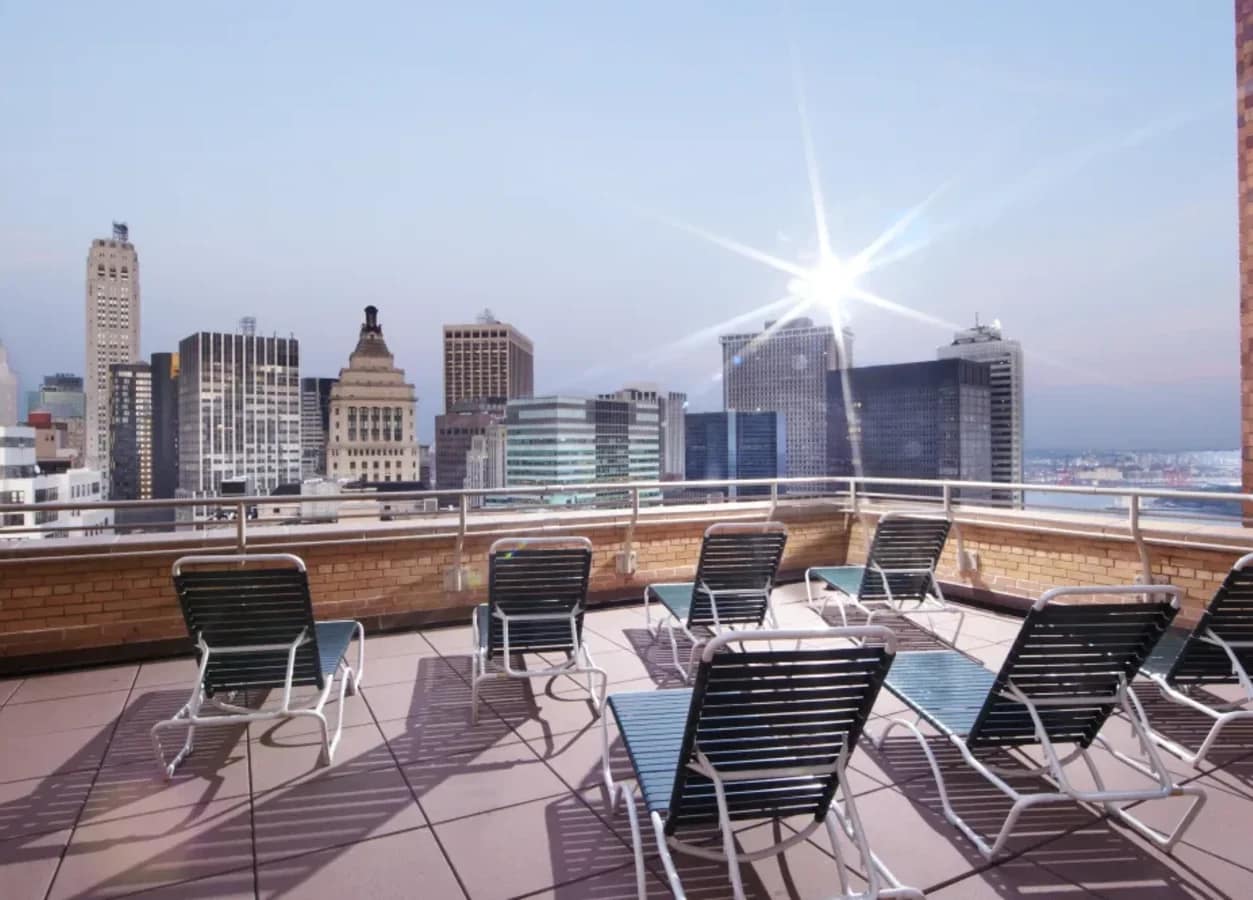 This luxury high-rise offers a wide array of exceptional amenities to elevate your lifestyle. Residents enjoy the services of a 24-hour doorman and concierge, as well as access to a fully equipped fitness center, a private indoor swimming pool, a cinema screening room, and a beautifully landscaped rooftop lounge with panoramic views of the Hudson River, Statue of Liberty, and the Manhattan skyline.