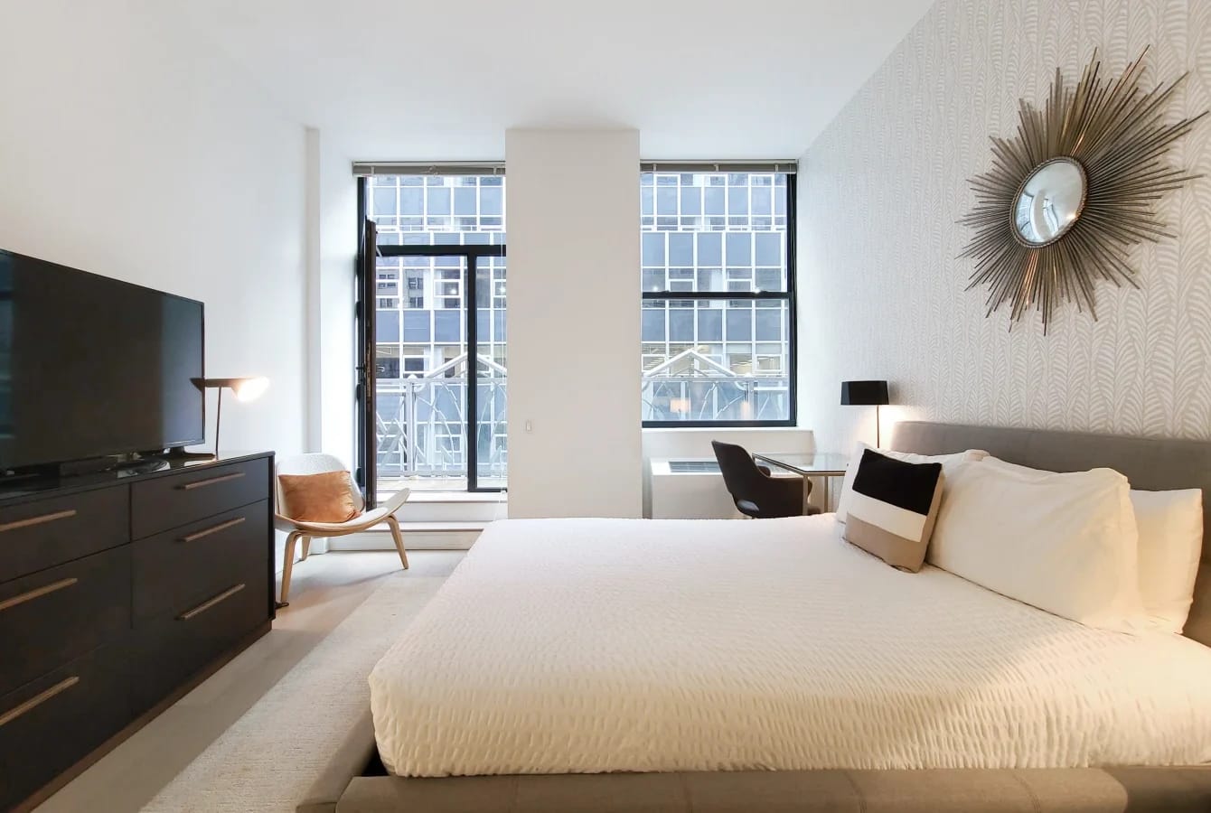 Welcome to Rector Place, a beautifully appointed studio apartment located in the heart of Battery Park City—one of Lower Manhattan’s most tranquil and refined residential neighborhoods. Thoughtfully designed with comfort and style in mind, this bright and airy apartment features oversized windows that bring in abundant natural light, sleek hardwood flooring, and a modern kitchen outfitted with stainless steel appliances and ample cabinetry. A queen-size bed and elegant furnishings complete the space, creating a relaxing urban retreat.