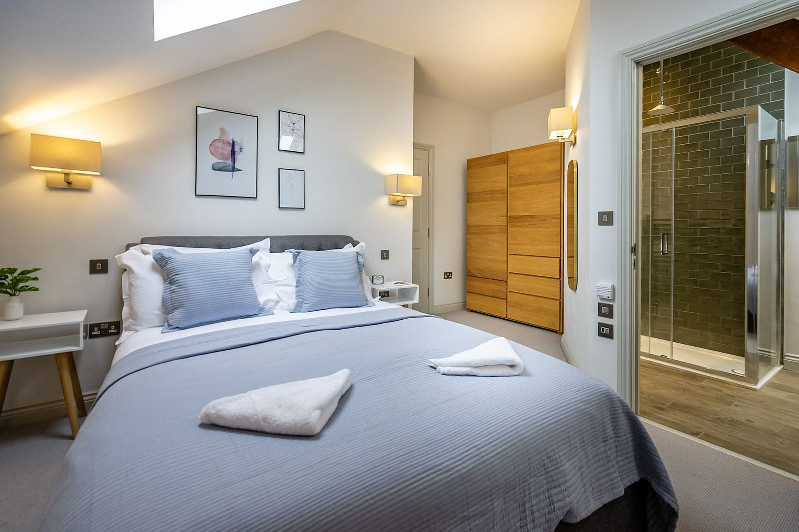 Upstairs, two beautifully decorated bedrooms provide restful sanctuaries for your stay. The master bedroom features a comfortable double bed, floor-to-ceiling handcrafted sliding wardrobes, and views of York’s iconic city walls. The second bedroom offers two single beds, making it an ideal option for children or friends travelling together. A smartly presented bathroom with a large walk-in shower completes the interior. With permit parking for one car, free high-speed WiFi, and thoughtful extras such as a washing machine, tumble dryer, and weekly cleaning service, every detail has been considered for guest comfort. Perfectly located just an eight-minute walk from York Racecourse and within easy reach of the city centre, Bishopgate Street Apartments is a unique blend of style, convenience, and character – the perfect base for your next York adventure.