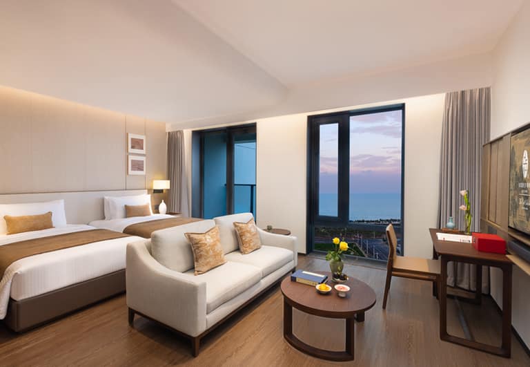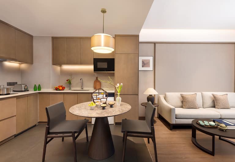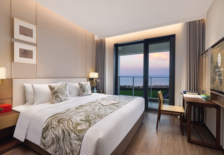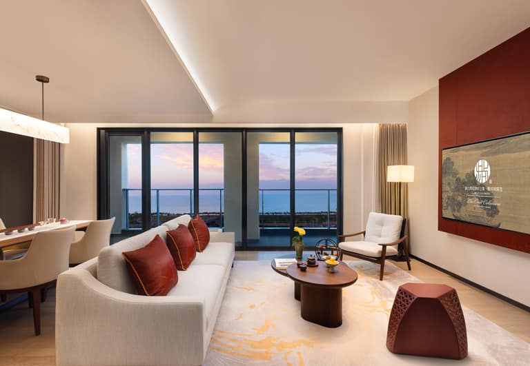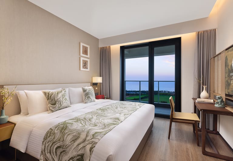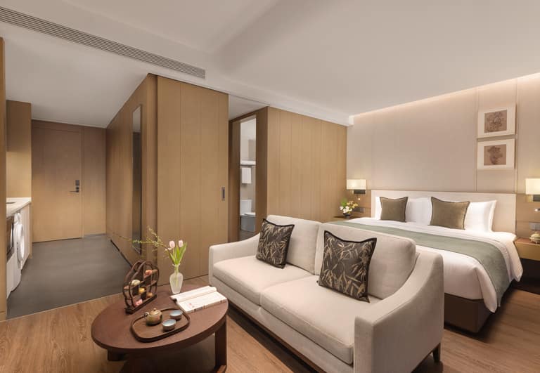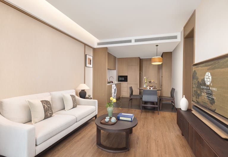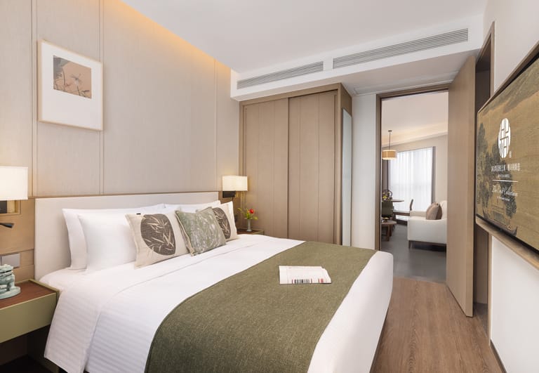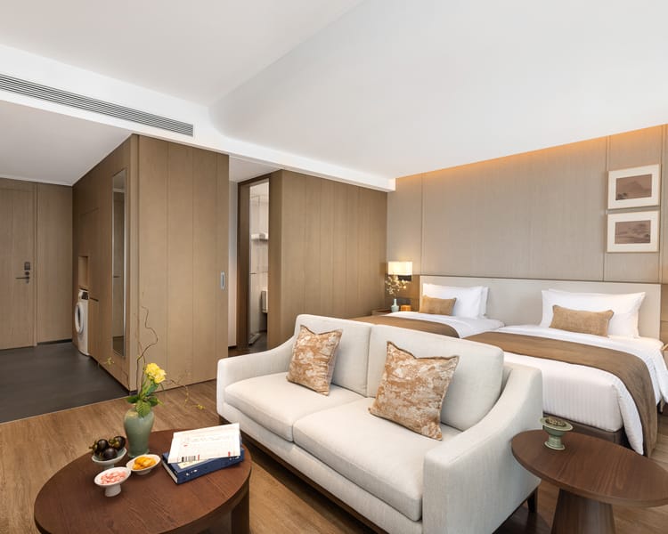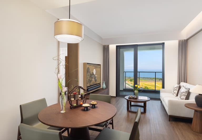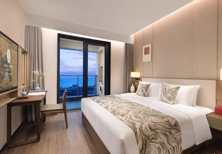 Bo’ao Seaside Aparthotel features 232 stylish and spacious accommodations, ranging from Studio Deluxe to Two-Bedroom Deluxe units. Each apartment is thoughtfully designed with floor-to-ceiling windows and private balconies that overlook tropical greenery, bathing interiors in natural light and refreshing views. Select units include fully equipped kitchens and large wardrobe areas, creating a true home-away-from-home experience for long or short stays. Modern appliances, spacious bathrooms, and a layout that prioritizes comfort ensure a restful and cozy environment.