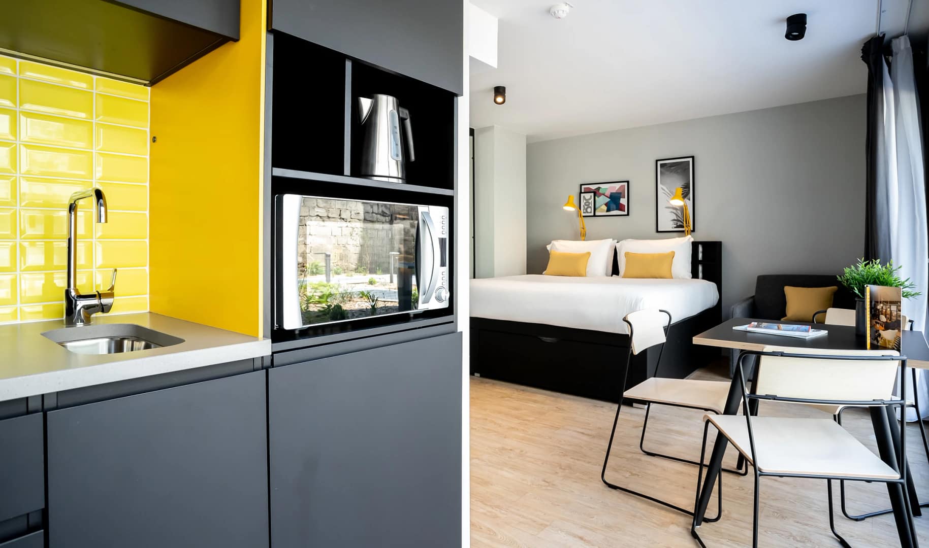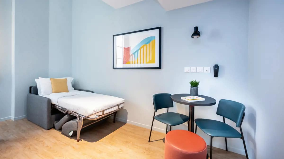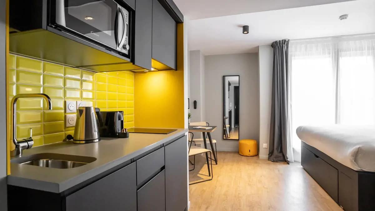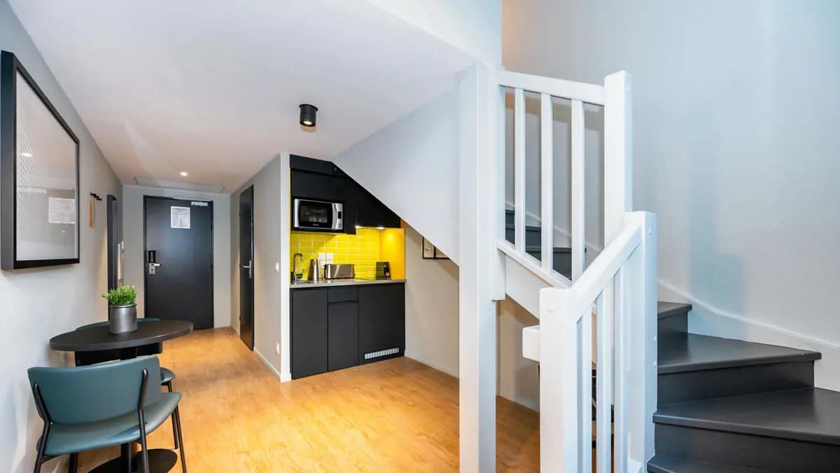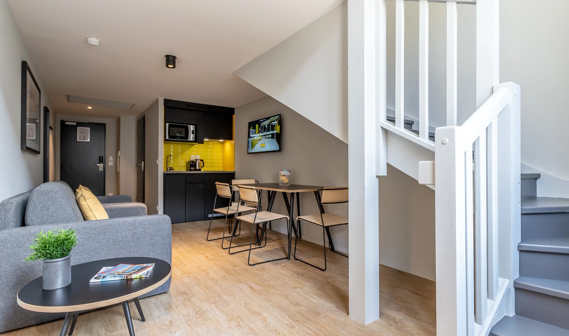 The residence boasts 111 fully furnished apartments, each thoughtfully designed to provide a comfortable and flexible living space. Every apartment features a modern kitchen, ideal for those who enjoy the freedom of preparing their own meals, whether for a quick breakfast before sightseeing or a relaxed dinner after a busy day. Spacious interiors, stylish contemporary furnishings, and a range of practical amenities create a true home-from-home atmosphere. To make your stay even more enjoyable, guests have access to on-site wellness facilities, including a gym, sauna, and steam room — perfect for unwinding after a day spent exploring Bordeaux or attending meetings.