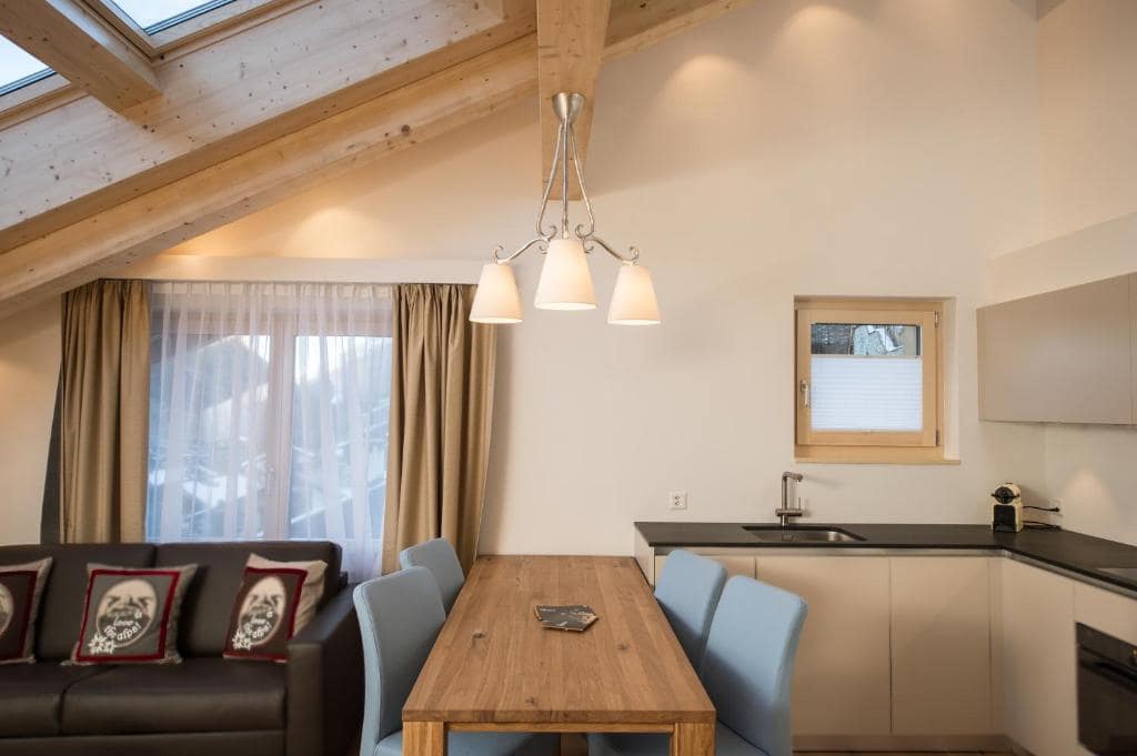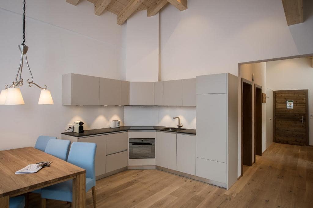 Inside, every apartment comes fully equipped with a modern kitchen featuring a stove, oven, dishwasher, refrigerator, and all necessary cookware, making it ideal for self-catering. Spacious living and dining areas provide comfortable spaces for relaxation and socialising, while bedrooms are furnished with premium beds and high-quality linens to ensure a restful night. Bathrooms are fully appointed with showers, bathtubs, and complimentary toiletries. Many apartments include additional features such as private fitness spaces, wood-burning stoves or fireplaces, and separate laundry facilities. High-speed WiFi, flat-screen TVs, and climate control throughout the apartments ensure that guests can work or unwind comfortably during their stay.