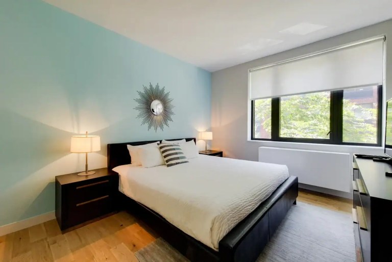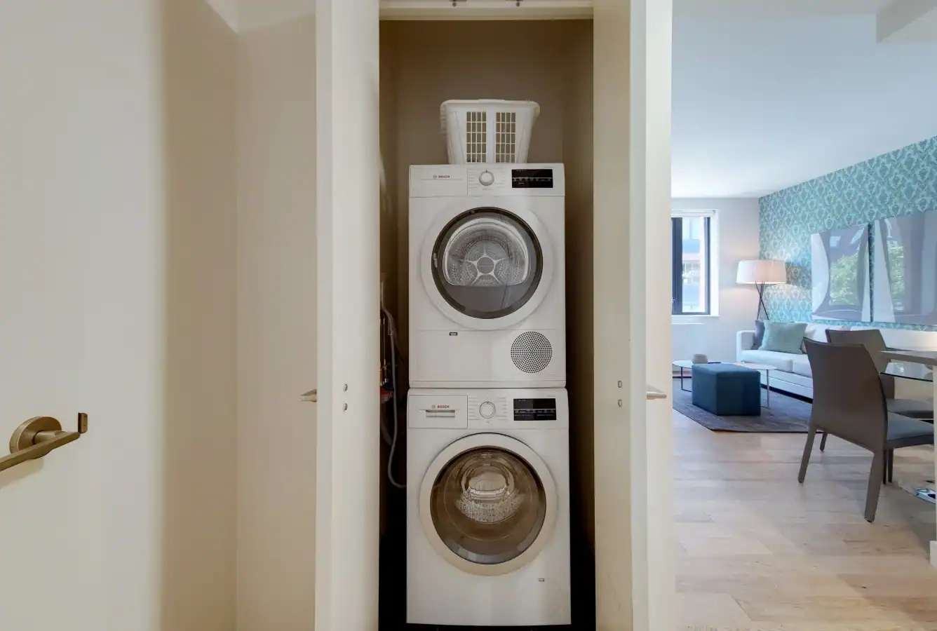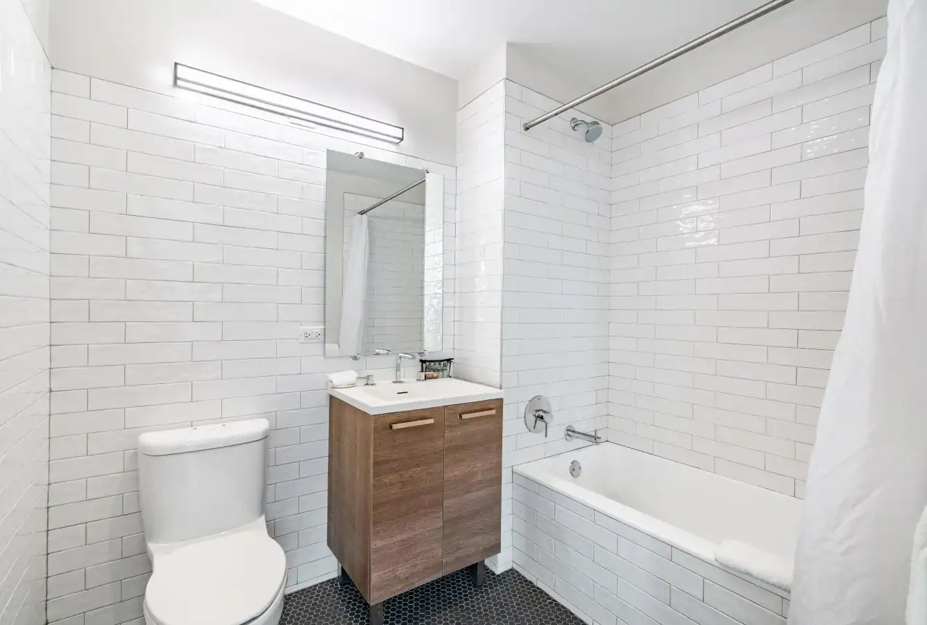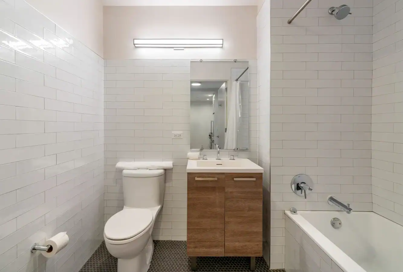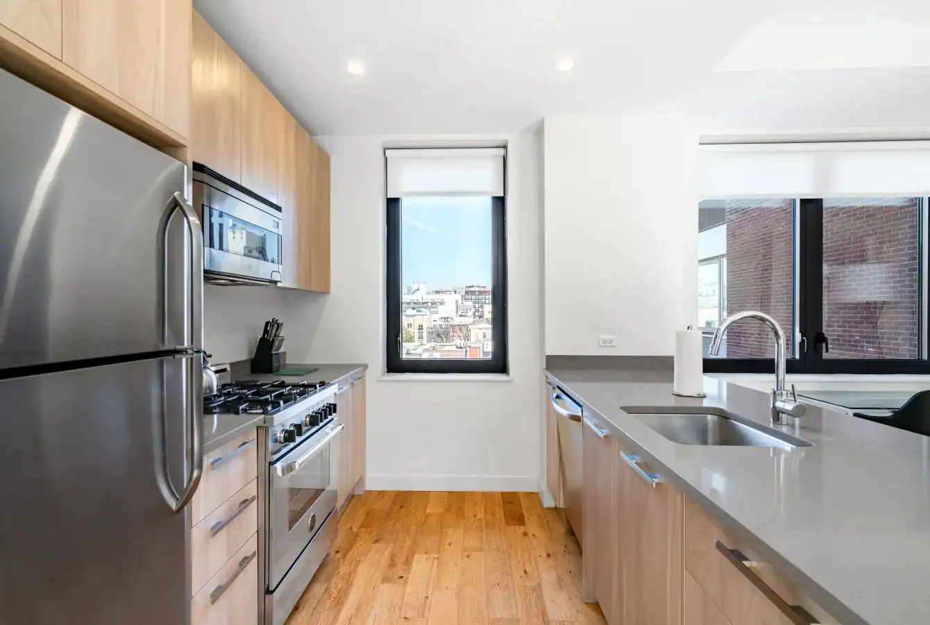 These serviced apartments in the heart of Williamsburg, Brooklyn, offer a stylish blend of modern design and everyday comfort. Available in one- and two-bedroom layouts, each unit features oversized windows, an open-concept floor plan, in-unit washer/dryer, and stainless steel appliances. Queen-sized beds are provided in both bedroom types, with the two-bedroom units offering an ideal setup for families, roommates, or professionals needing extra space. Interiors are elevated with light-filled rooms, Caesarstone quartz backsplashes, polished countertops, and spa-inspired bathrooms with custom Lineadecor vanities, mosaic flooring, and sleek Nemo-tiled showers—perfect for long-term stays or transitional living.