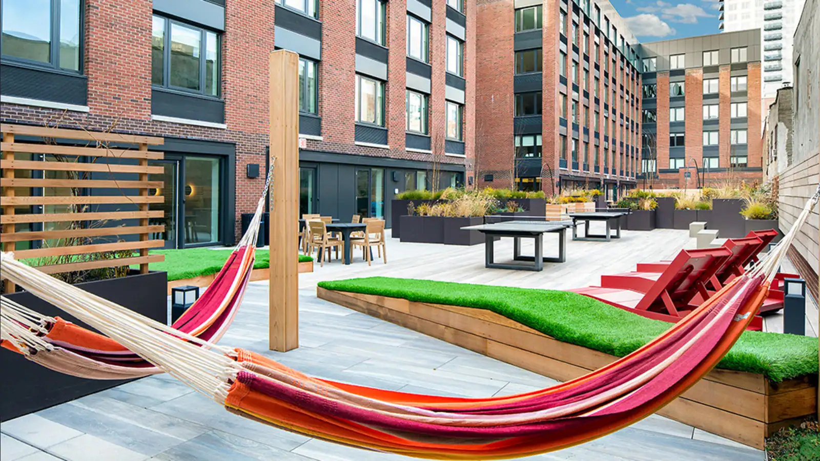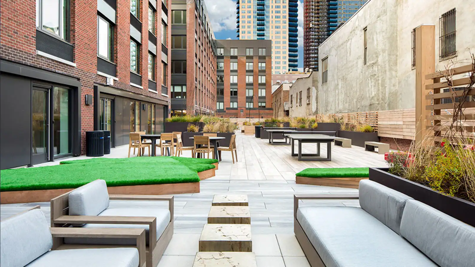 Residents benefit from an impressive selection of on-site amenities designed to support both relaxation and productivity. Enjoy access to a rooftop terrace with views of the Empire State Building, a landscaped courtyard, outdoor grilling stations, a fully equipped fitness center, and a game room. Additional features include 24-hour doorman service, on-site parking, bike storage, and multiple lounge areas for working remotely or unwinding. These thoughtfully appointed apartments offer the flexibility of home with the ease and comfort of professional management—ideal for business travelers, creatives, or anyone seeking a turnkey living experience in Brooklyn.