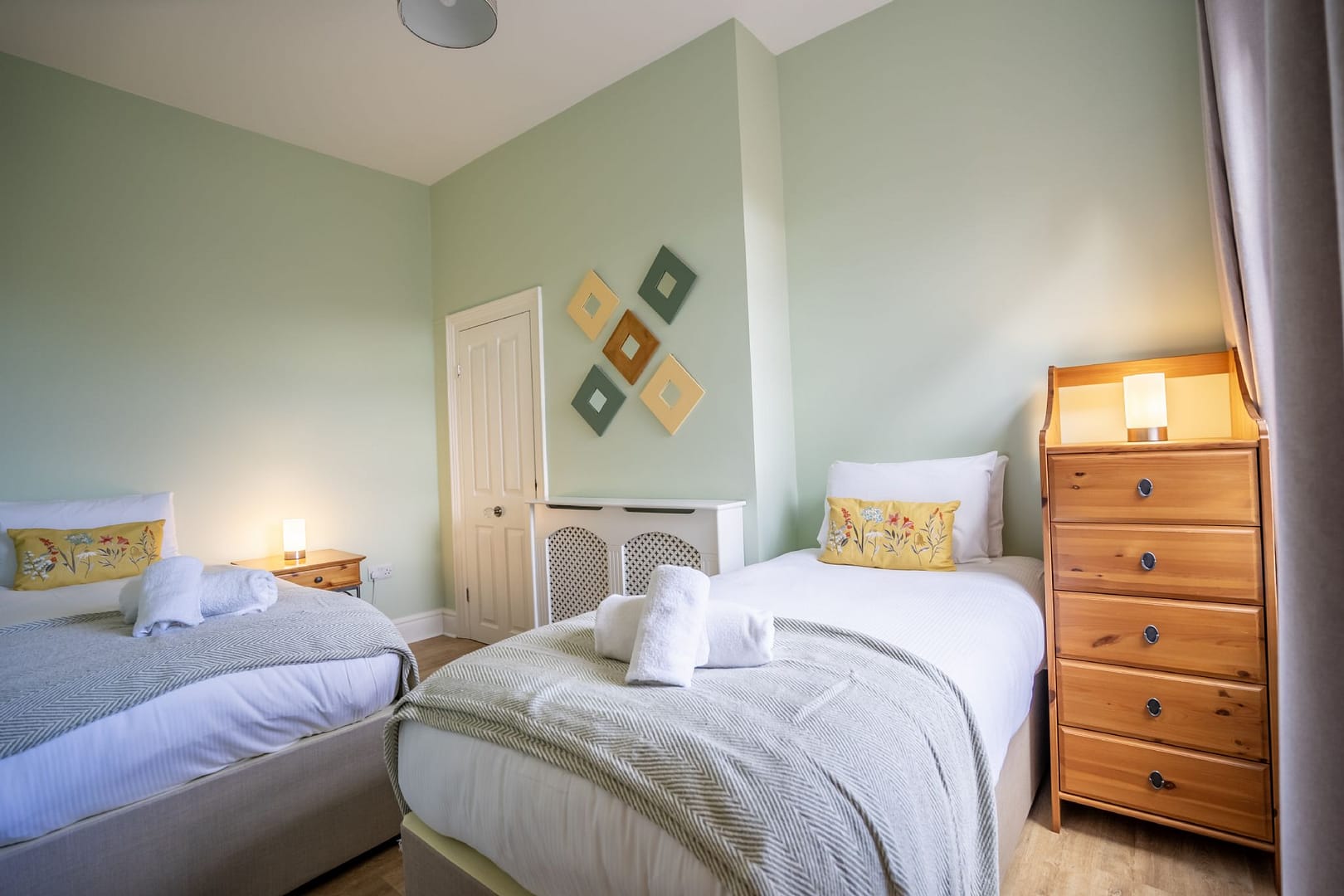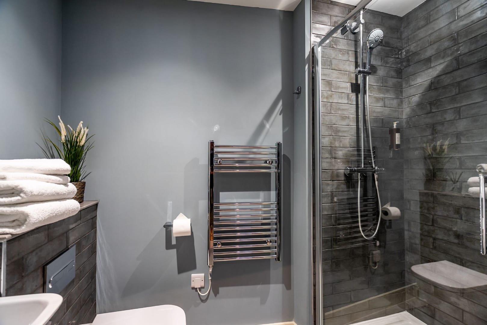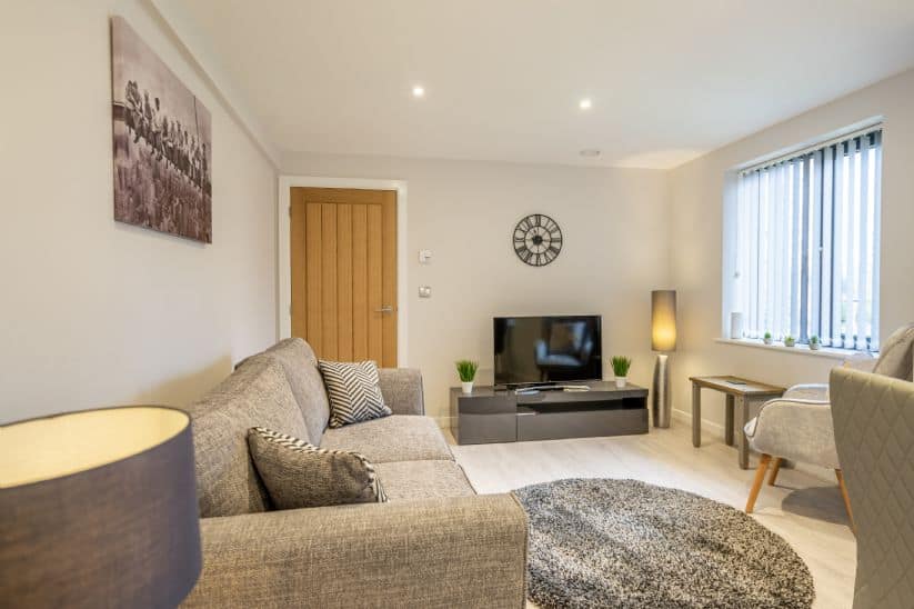 Step inside and you’ll be greeted by a warm, comfortable lounge designed for relaxation. Seating for three is arranged around a Smart TV offering complimentary Netflix, Amazon Prime, Sky Sports, and a Bluetooth speaker, so whether you’re in the mood for a movie night or catching up on your favourite shows, you’ll have plenty of options. The well-equipped kitchen comes with all the essentials, from a fridge freezer and dishwasher to a cafetiere for your morning brew. A dining area with seating for four makes mealtimes simple and enjoyable, whether you’re preparing a home-cooked dinner or enjoying local takeaway after a busy day of sightseeing.