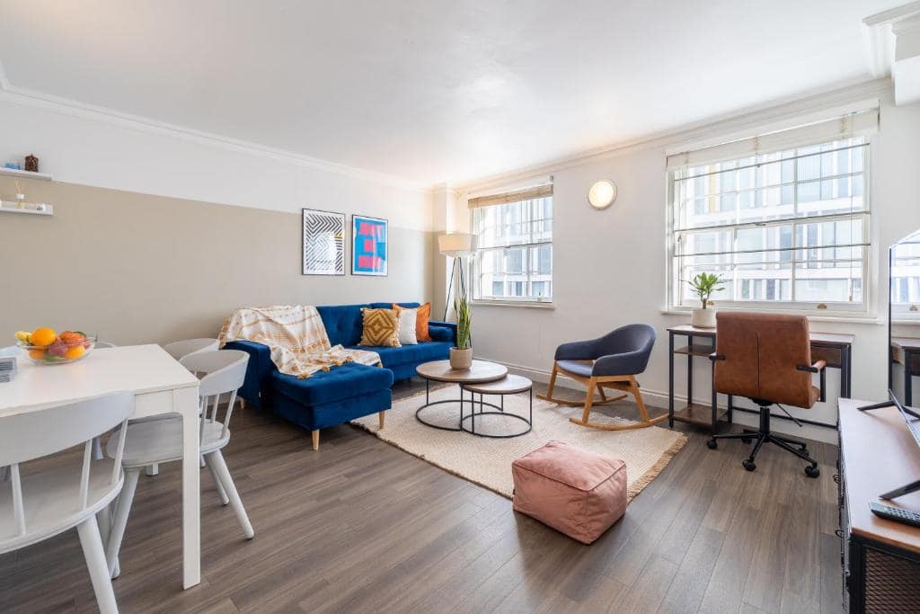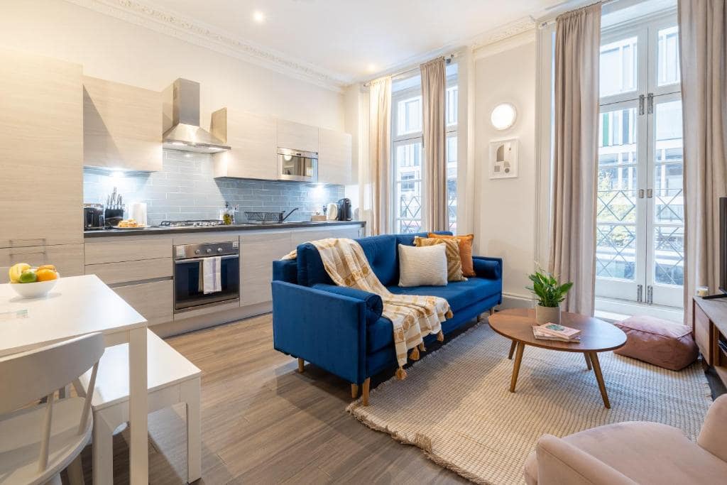 Serviced apartments in London near Buckingham Palace provide a refined, comfortable living space for those seeking an extended stay in the heart of London. These fully furnished apartments are designed to offer the convenience and privacy of home, with well-equipped kitchens, spacious living areas, and modern amenities. Guests can enjoy the independence of self-catering while being located just moments from the iconic Buckingham Palace, as well as other key attractions such as Westminster Abbey and the Houses of Parliament.