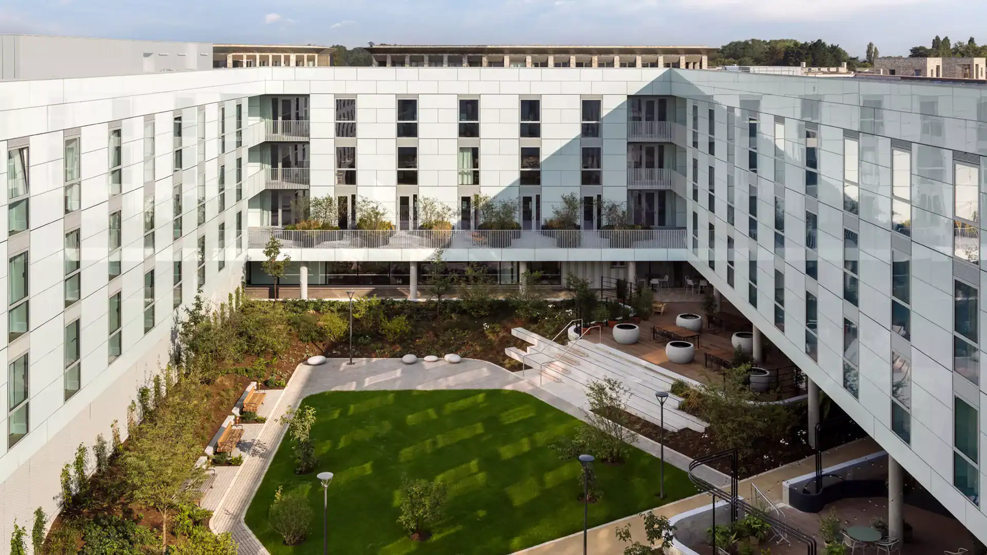 Located just two miles from the city’s historic centre, our Aparthotel in Cambridge sits within Eddington — the city’s most sustainable and forward-thinking district. Here, you’ll find modern living surrounded by green spaces and innovative design. The location offers quick and easy access to the postcard-perfect streets, quaint shops, and scenic punting routes that make Cambridge so famous. Cambridge Business Park and other key campuses are also close by, making it an ideal base for both leisure travellers and visiting professionals. Whether you prefer to hop on a bike, jump in a taxi, or catch a bus, the city’s iconic colleges, museums, and cultural highlights are all just moments away.