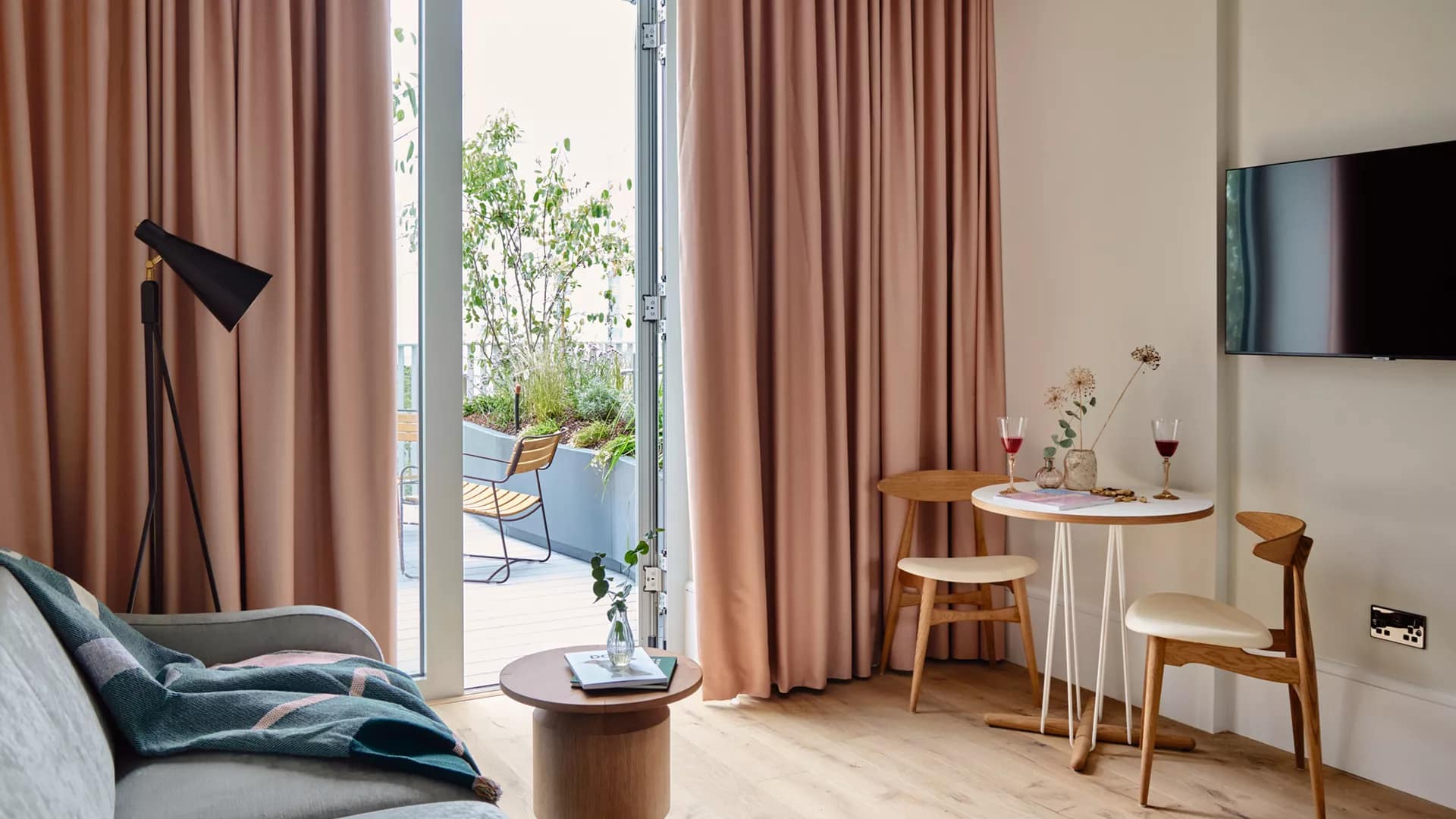 Each studio and apartment at Cambridge Parker’s Piece Aparthotel is designed with refined modernity and thoughtful amenities to create a sense of calm and space. Apartments feature fully equipped kitchens with oven, hob, microwave, refrigerator, and dishwasher, perfect for self-catering during short or extended stays. In-room washer-dryer units add convenience, while living areas include Smart TVs, complimentary high-speed Wi-Fi, and elegant furnishings that balance contemporary style with historic character. Bedrooms feature premium bedding and blackout curtains for restful nights, while large sash windows flood rooms with natural light. Marble-accented bathrooms include luxury Hunter Lab amenities, walk-in rain showers, and heated towel rails, creating a spa-like atmosphere.