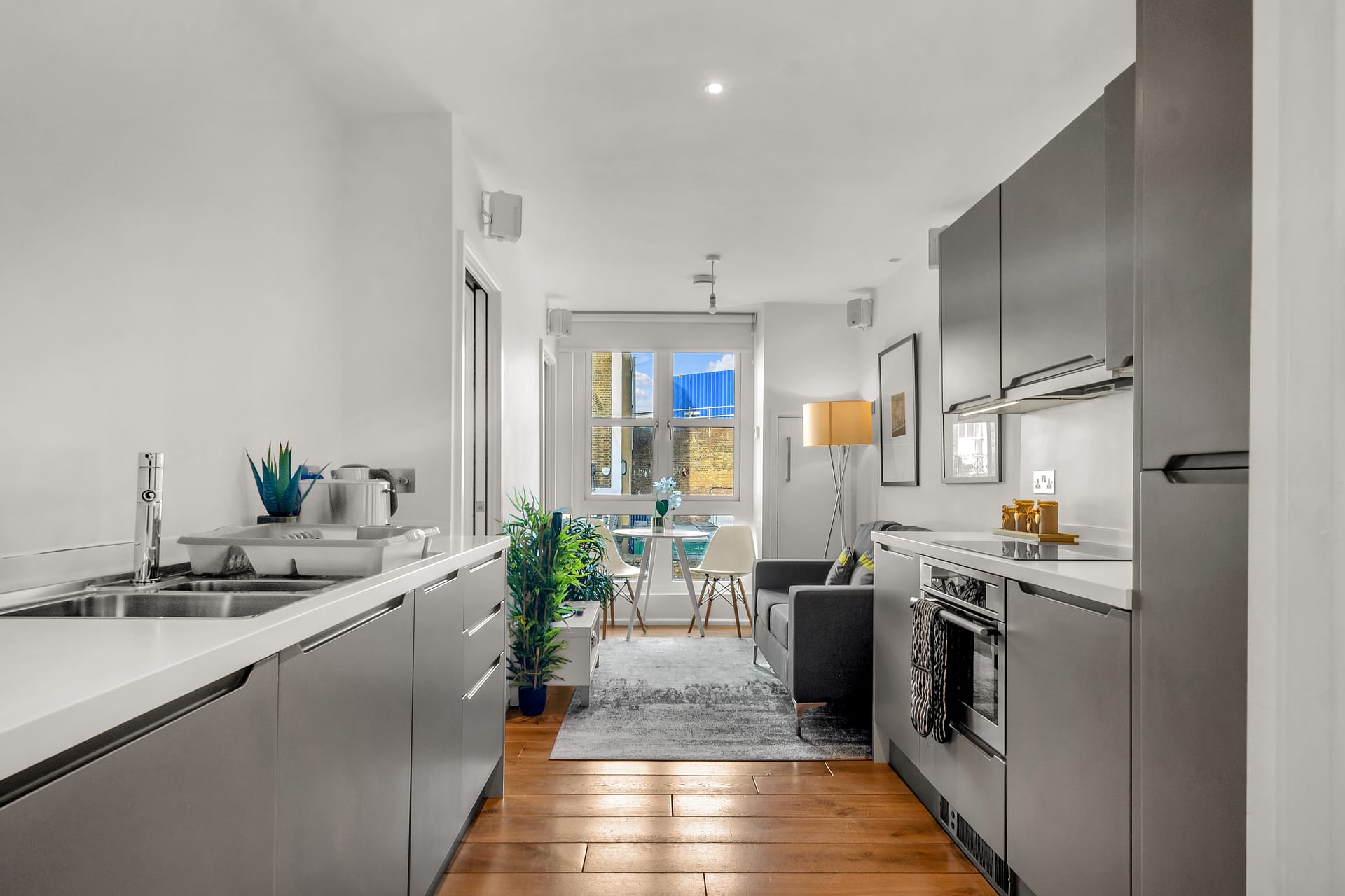Our Camden Road Serviced Apartments provide a stylish and comfortable base in one of London’s most vibrant districts. These one-bedroom apartments are designed with modern living in mind, boasting a high-spec finish that makes every stay seamless. Each kitchen is fully stocked with all the essentials and integrated appliances, while the bathrooms add a touch of indulgence with underfloor heating and contemporary fixtures. The open-plan living areas create a cosy yet practical environment, complete with free high-speed Wi-Fi so you can work, relax, or stay connected with ease. Perfect for both business and leisure travellers, the apartments combine convenience with modern elegance, allowing you to enjoy Camden at your own pace.