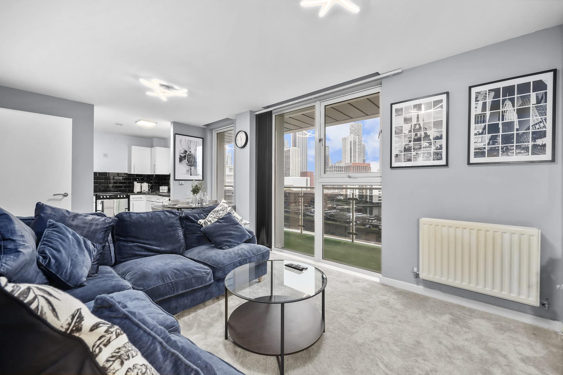 Canary Wharf Blackwall Apartments are modern and well-appointed two-bedroom apartments near Canary Wharf that offer the perfect accommodation for up to five guests, whether you’re visiting London for business or leisure. Each of the two bedrooms features a comfortable double bed, while the spacious living room includes an inflatable air mattress for additional sleeping arrangements. The open-plan living and dining area connects to a private balcony, allowing for fresh air and outdoor relaxation. The fully equipped kitchen includes everything you need to prepare your own meals—ideal for longer stays or guests who prefer the comforts of home. Fast, free WiFi and a Smart TV are also provided for work or entertainment.