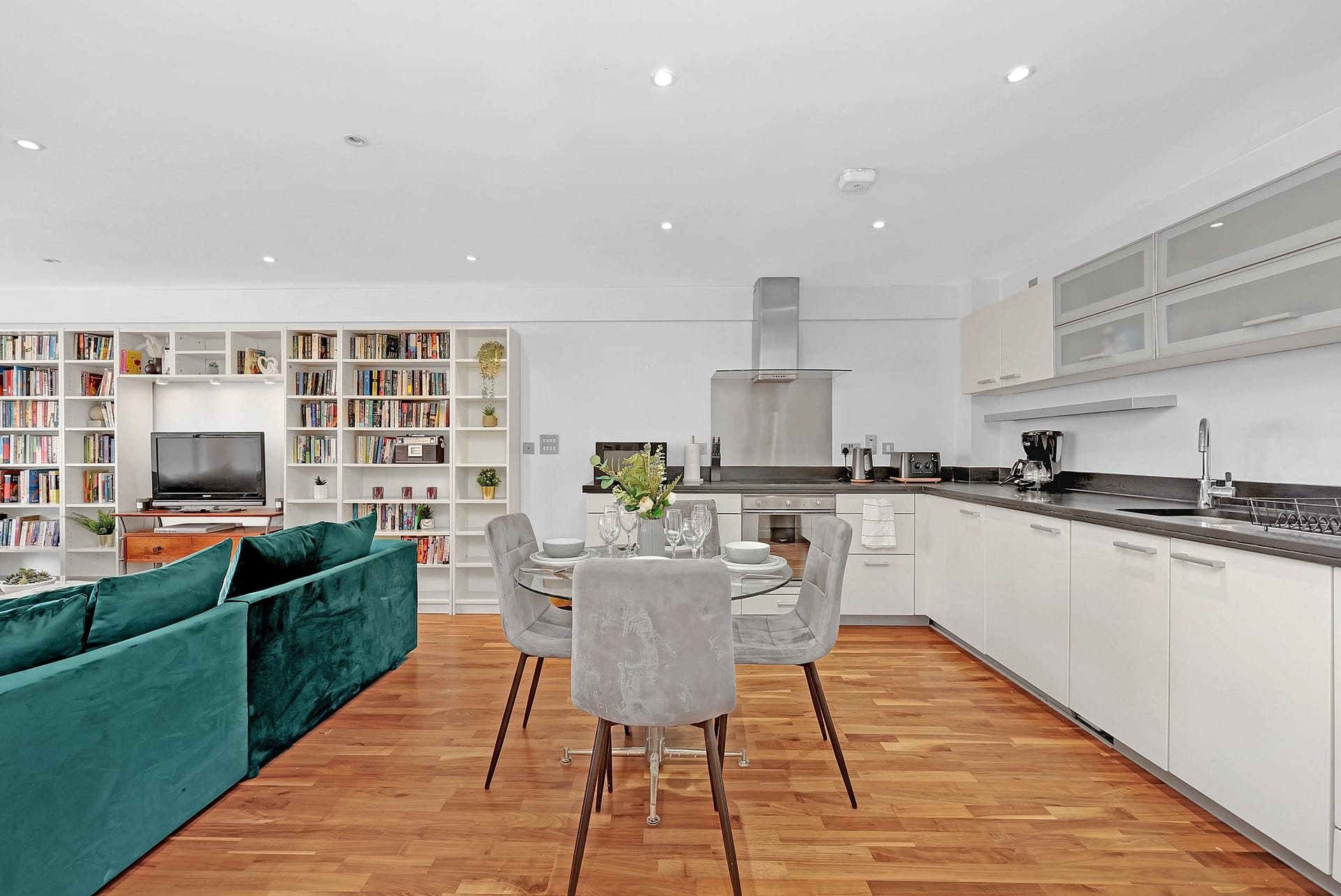 Welcome to our bright and modern Canary Wharf Manilla Apartments in the heart of Canary Wharf. Perfect for both short and extended stays, the space features one king and one super king bedroom, along with a comfortable inflatable mattress for additional guests. Floor-to-ceiling windows in both bedrooms create a light and airy atmosphere, while blackout curtains ensure a restful night’s sleep. The spacious living area opens onto a large private balcony—ideal for enjoying your morning coffee or relaxing after a day in the city. Located on the 4th floor, the apartment offers step-free access via an elevator.