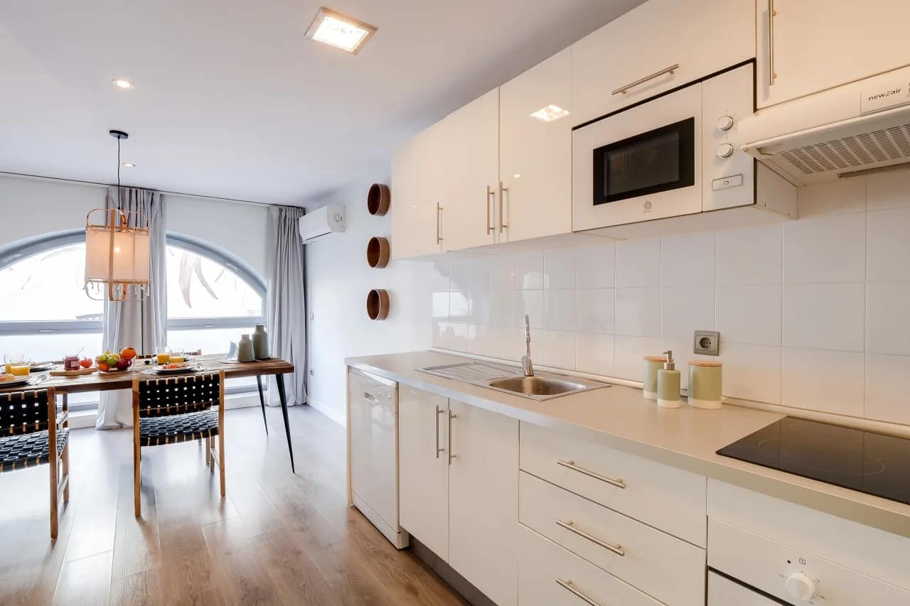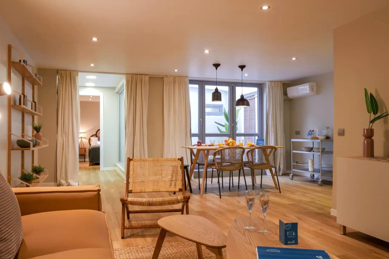 Tucked away in the charming neighborhood of Gràcia, the Carrer de Verdi Apartments offers an authentic Barcelona experience in a lively yet laid-back setting. Designed with care by local interior decorators, this stylish two-bedroom apartment combines sleek modern touches with warm, homelike comfort. Sunlight pours in through tall windows, highlighting the elegant furnishings and clean design. Whether you’re visiting for work, a family getaway, or a romantic escape, this bright 60m² retreat provides the perfect blend of functionality and style.