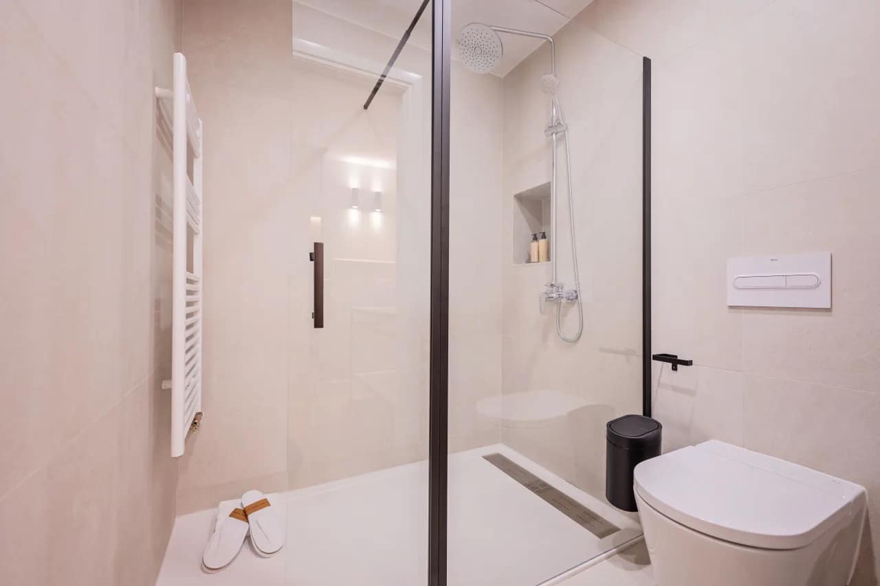 The apartments feature a fully equipped kitchens, perfect for preparing breakfast before a day of sightseeing or enjoying a Spanish style dinner at home. You will find everything you need, from cookware to a Nespresso machine, toaster, and dishwasher. The two cosy bedrooms come with 5 star mattresses, luxury linens, and ample storage, while the bathrooms include high end toiletries, fresh towels, and modern fixtures. Step out onto the balcony for a glimpse of city life or unwind in the evening with your favourite show on the cable TV. Please note: access to the building involves a few steps, and the elevator, while available, is narrow.