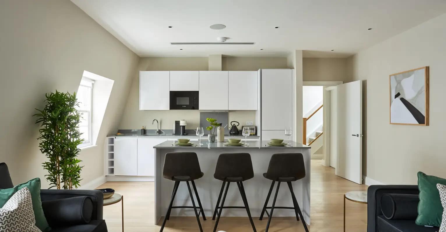 Chancery Lane Serviced Apartments offer a stylish and practical base in one of central London’s most prestigious neighbourhoods. These thoughtfully designed one-bedroom apartments are ideal for both short and extended stays. They cater to business travellers, leisure guests, and anyone in need of a well-connected yet peaceful stay. Each apartment includes a fully equipped kitchen with modern appliances and all the essentials for cooking and dining in. The spacious living room provides a comfortable space to relax or entertain. For added convenience, guests enjoy an in-unit washer-dryer, smart TV, and free high-speed Wi-Fi. These pet-friendly apartments also allow you to bring your furry friend along. A small fee and refundable deposit apply. Housekeeping services help keep the space clean and welcoming throughout your stay.