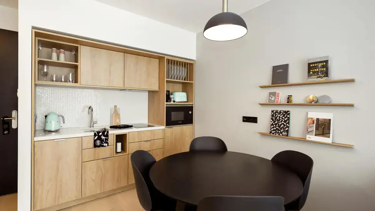 Historic remnants, cosmopolitan cafés, and striking murals springing from historic edifices — there’s no city quite like Berlin. The Checkpoint Charlie Zimmerstrasse Aparthotel in Berlin perfectly embodies this unique blend of old and new. Once a symbol of division, this area has transformed into a lively, dynamic neighbourhood bursting with energy and culture. There’s truly no better way to experience this vibrant quarter than on foot. You can stroll to the Checkpoint Charlie Museum to uncover fascinating stories of courage and escape, wander along the bustling Friedrichstraße with its high-end shops and quirky boutiques, and, of course, savor a classic Berlin currywurst while soaking up the urban atmosphere. Our design-led Aparthotel in Berlin offers the ultimate base for exploration, with a central location that caters perfectly to couples, families, and groups of friends alike.