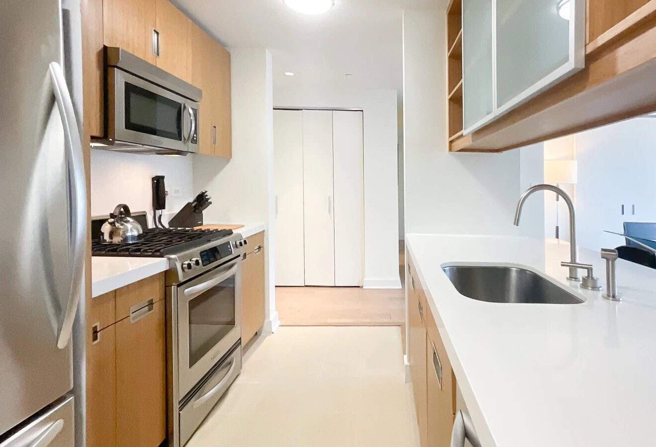 Welcome to The Caledonia, a luxury residence located in West Chelsea where sophisticated design meets urban comfort. Available in one- and two-bedroom layouts, each apartment features refined interiors and bespoke finishes that offer a tranquil escape from the pace of city life. Designed by the award-winning Clodagh, homes at The Caledonia feature oversized windows, sleek hardwood floors, and open-concept layouts filled with natural light. The gourmet kitchens include stainless steel appliances, custom bamboo cabinetry, and quartzite stone countertops. Primary bedrooms offer generous walk-in closets and spa-like bathrooms. Select units include in-unit washer/dryers for added convenience.
