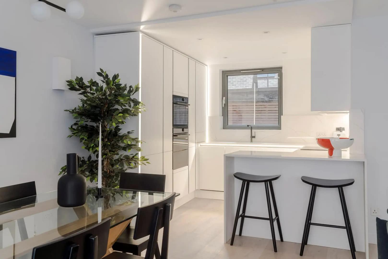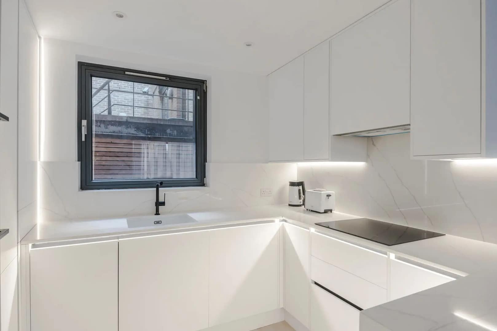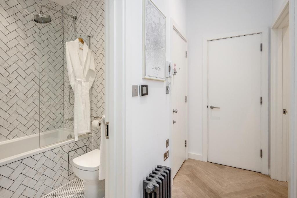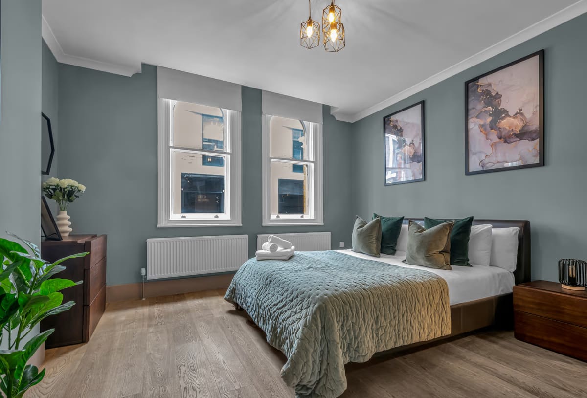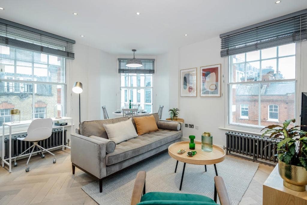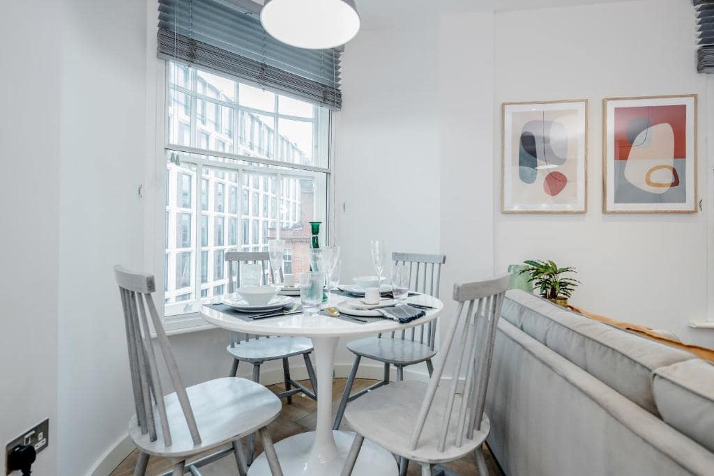 Serviced apartments on Cleveland Street offer a comfortable and convenient short stay in Fitzrovia. These fully furnished apartments feature spacious living areas, modern kitchens, and stylish interiors designed to make guests feel right at home. The open-plan layouts provide plenty of natural light, creating a bright and welcoming environment. Guests can enjoy the flexibility of self-catering accommodations, perfect for longer visits or those who prefer the freedom to dine in. The apartments are also equipped with high-speed Wi-Fi, smart TVs, and in-unit laundry facilities, catering to the needs of both business and leisure travelers.