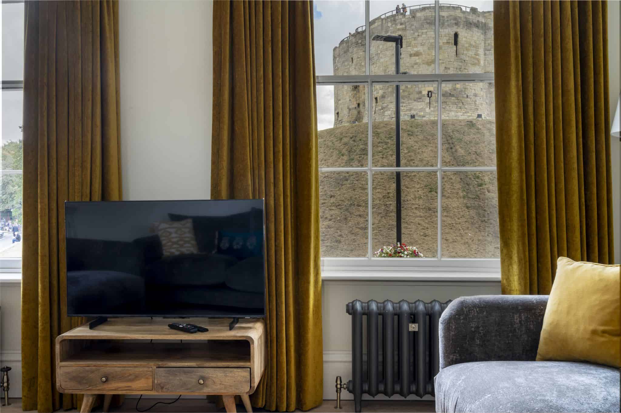 Clifford’s Townhouse is one of York’s most remarkable holiday homes, offering an award-winning blend of historic charm and modern luxury. Proudly recognised at the York Design Awards 2023, winning in both the Commercial or Community (Small) category and the prestigious Press People’s Choice Award, this property is a true showpiece in the city’s centre. From its private street-level entrance, guests are welcomed into a striking hallway where vibrant colours and carefully curated design touches set the tone for the entire house. Overlooking the iconic Clifford’s Tower, the townhouse offers views from both the master bedroom and living room that are simply unmatched, making your stay feel even more special.