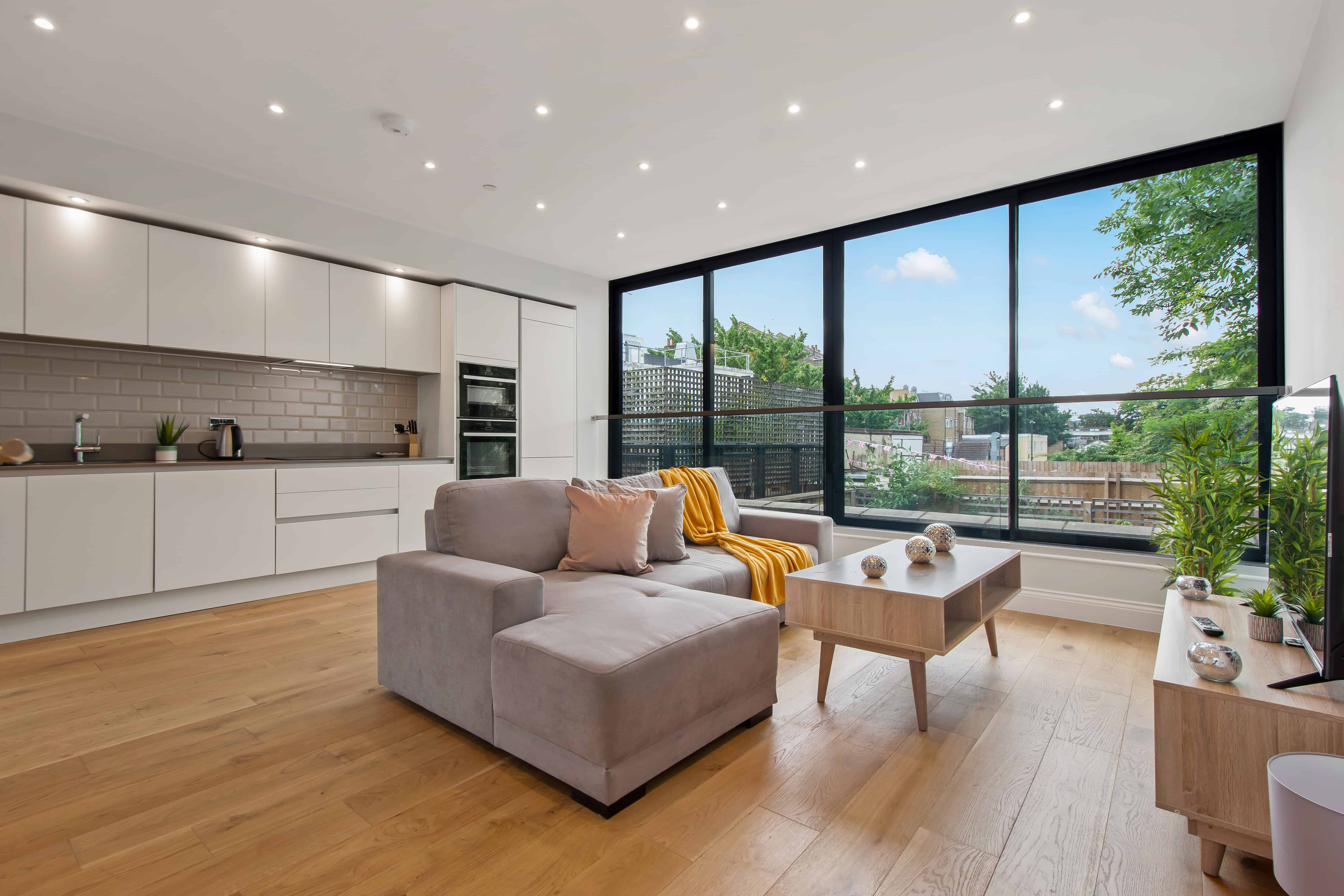 Dalston Serviced Apartment offers a luxurious and spacious retreat in the heart of Stoke Newington, one of East London’s most characterful and creative neighbourhoods. This beautifully designed three-bedroom property is spread over three generous floors, offering 900 square feet of stylish living space ideal for families, groups, or business travellers. Two private patios provide a peaceful outdoor escape, perfect for enjoying a morning coffee or winding down in the evening. The open-plan first-floor layout creates a seamless flow between kitchen, dining, and lounge areas, while the principal bedroom benefits from a private en-suite and direct access to one of the patios—offering a rare touch of tranquillity in the city.