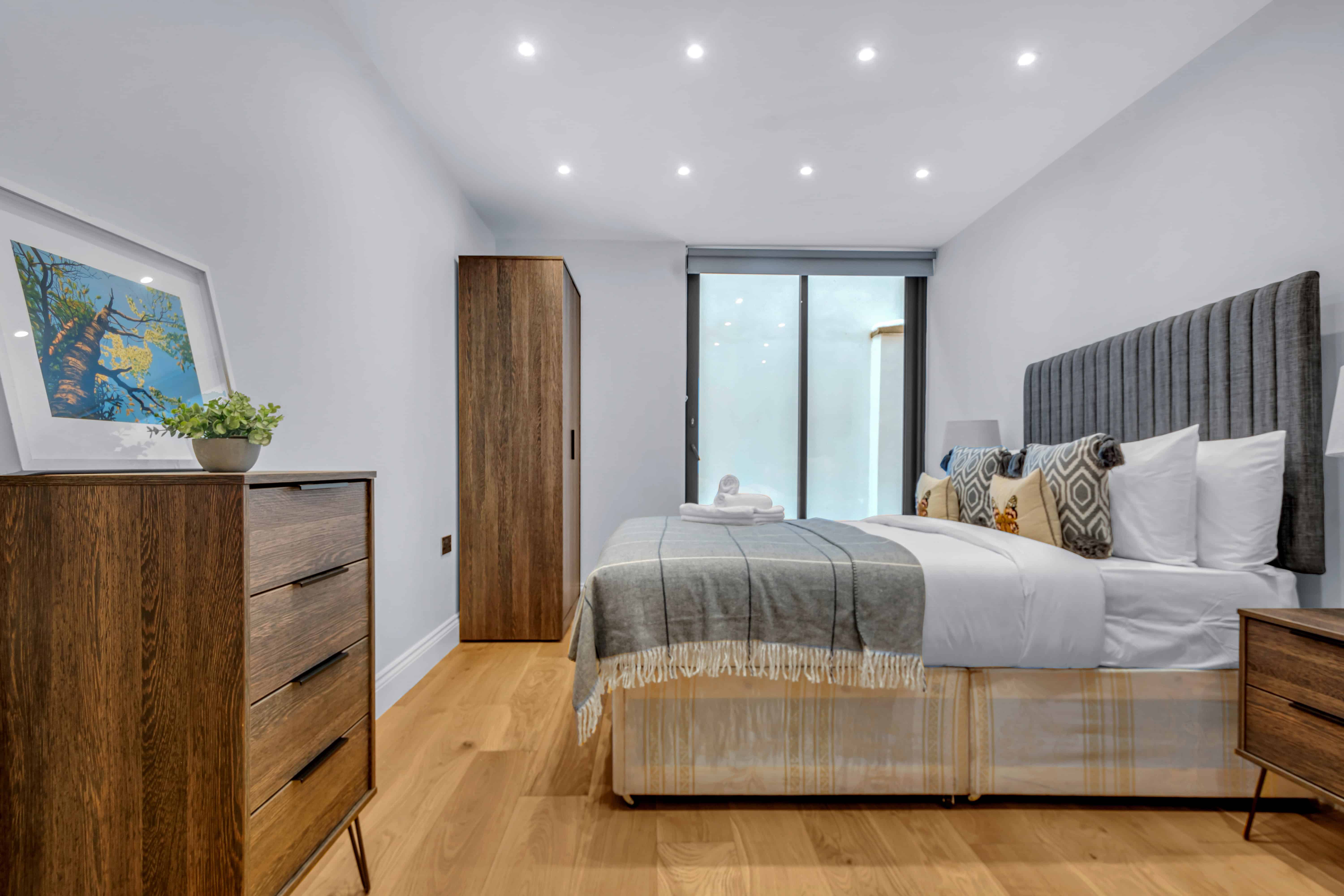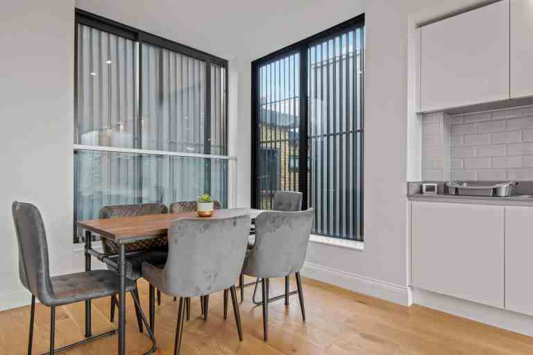 Inside, every element has been curated with comfort and practicality in mind. The interiors strike a perfect balance between modern design and homely charm. A fully equipped kitchen allows for effortless self-catering, whether you’re preparing a family meal or a quick breakfast before heading out. Spacious bedrooms with high-quality linens, ample storage, and sleek bathrooms make for a restorative stay. The Dalston Serviced Apartment is ideal for longer stays, providing guests with all the functionality of a home alongside the benefits of a prime location. From the thoughtful layout to the calm, neutral palette and natural light, the space is designed to help you settle in with ease.