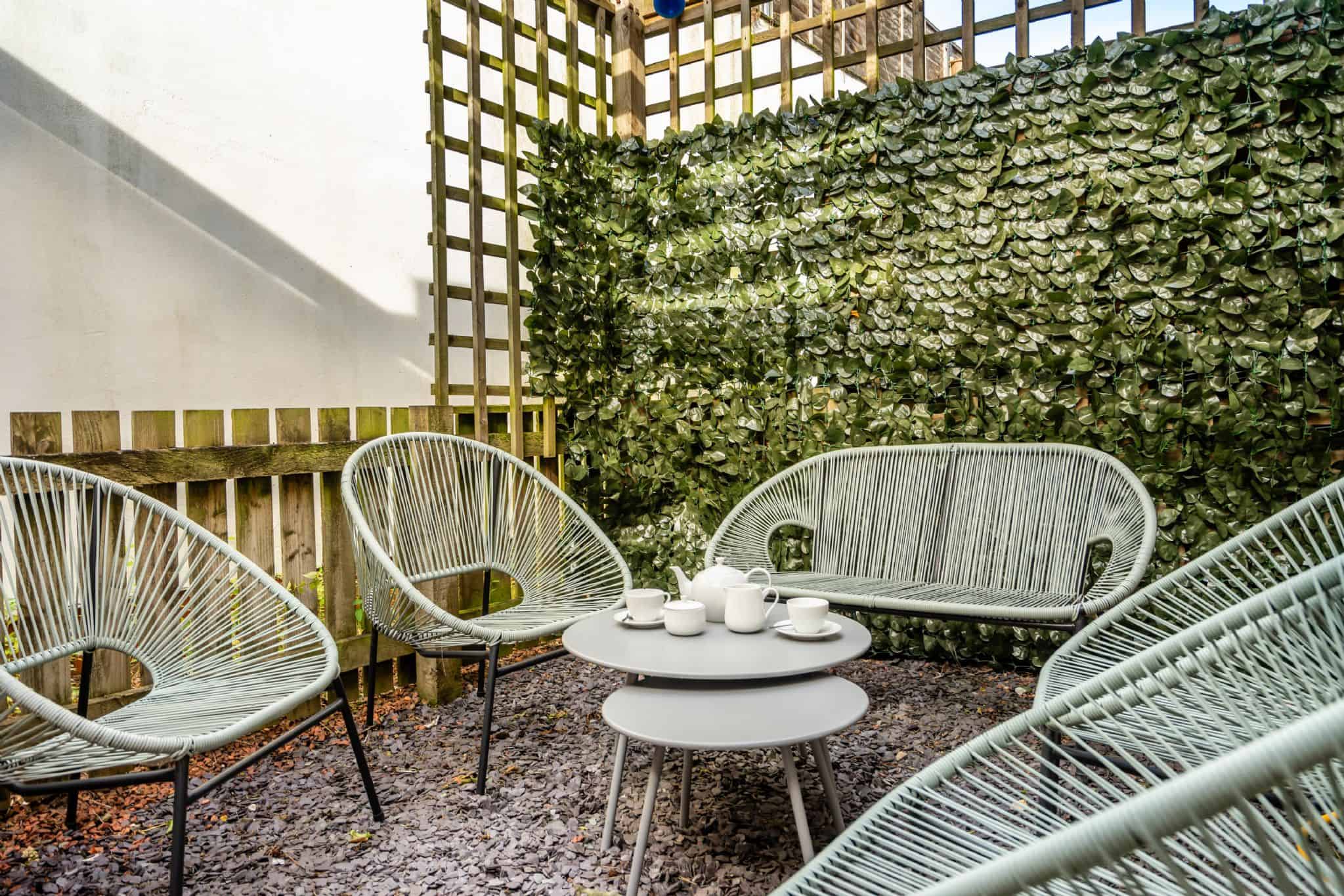 Upstairs, two beautifully designed bedrooms ensure restful nights. The master bedroom offers a sumptuous king-size bed, ample storage, and its own TV for added comfort. The second bedroom features a versatile super-king that can be split into twin beds, making it ideal for children, friends, or additional family members. A modern bathroom sits between the two rooms, complete with a walk-in shower and all the essentials, while a separate WC adds extra convenience for groups. With its peaceful outdoor retreat, light-filled living spaces, and flexible sleeping arrangements, Dewsbury Court Apartments is perfectly suited for families, couples, or groups of friends seeking a stylish stay in the heart of York.