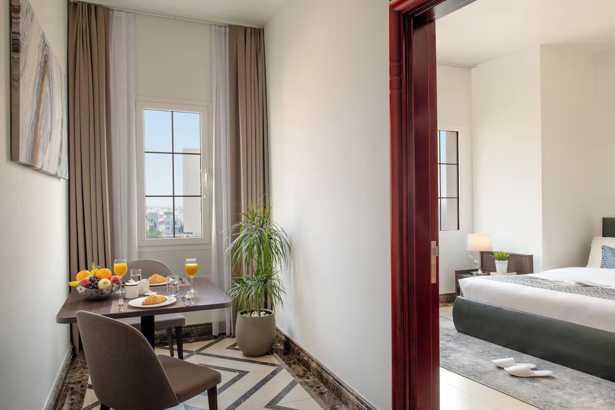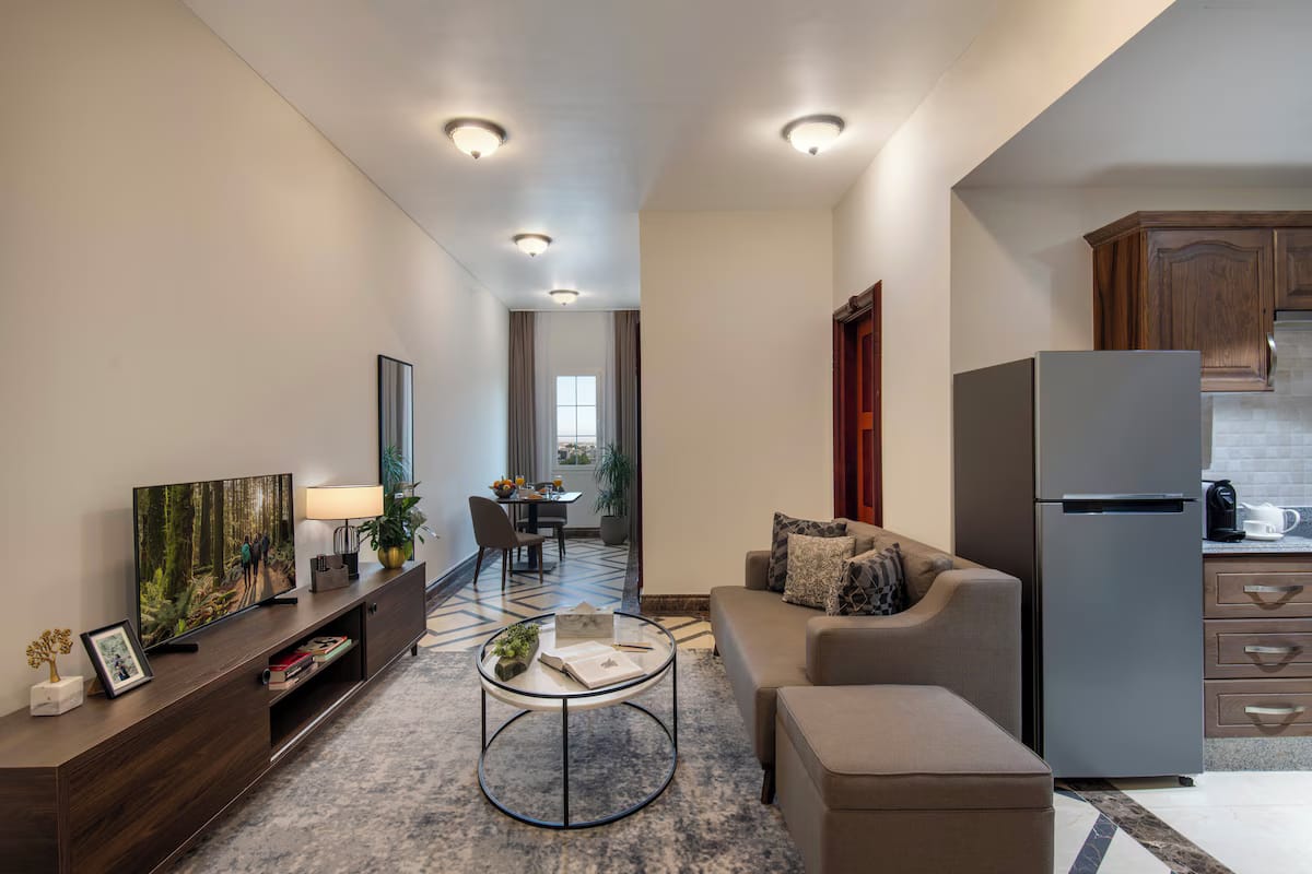 Doha Al Khail Aparthotel offers a sophisticated blend of style, comfort, and convenience in one of Doha’s most dynamic urban districts. Designed for both short and extended stays, each fully furnished unit features open-plan living and dining areas, a complete kitchen, and a sleek modern bathroom. Whether you’re visiting for business or leisure, you’ll enjoy the flexibility of self-catering accommodation combined with hotel-style amenities. Guests can relax at the rooftop infinity pool with stunning city views, maintain their routine in the fully equipped fitness centre, or savour a range of international flavours at the on-site restaurant. With 24-hour reception, complimentary Wi-Fi, laundry service, and secure underground parking, everything is in place for a seamless and stress-free stay.