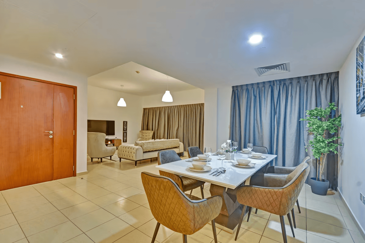 Stepping inside Dubai Marina Tower Apartments, you’ll find contemporary, thoughtfully designed living spaces intended to deliver comfort, practicality and style. Typical units include open-plan living and dining areas, fully equipped kitchens with modern appliances, and private balconies offering marina or skyline views — ideal for enjoying a morning coffee or evening sunset over the water. Bedrooms are furnished to high standards, and many layouts provide generous space, storage and natural light thanks to well-arranged floor plans and large windows. For both short-term guests and longer-term residents, the apartments offer a “home-away-from-home” atmosphere, combining practical amenities with refined finishes.