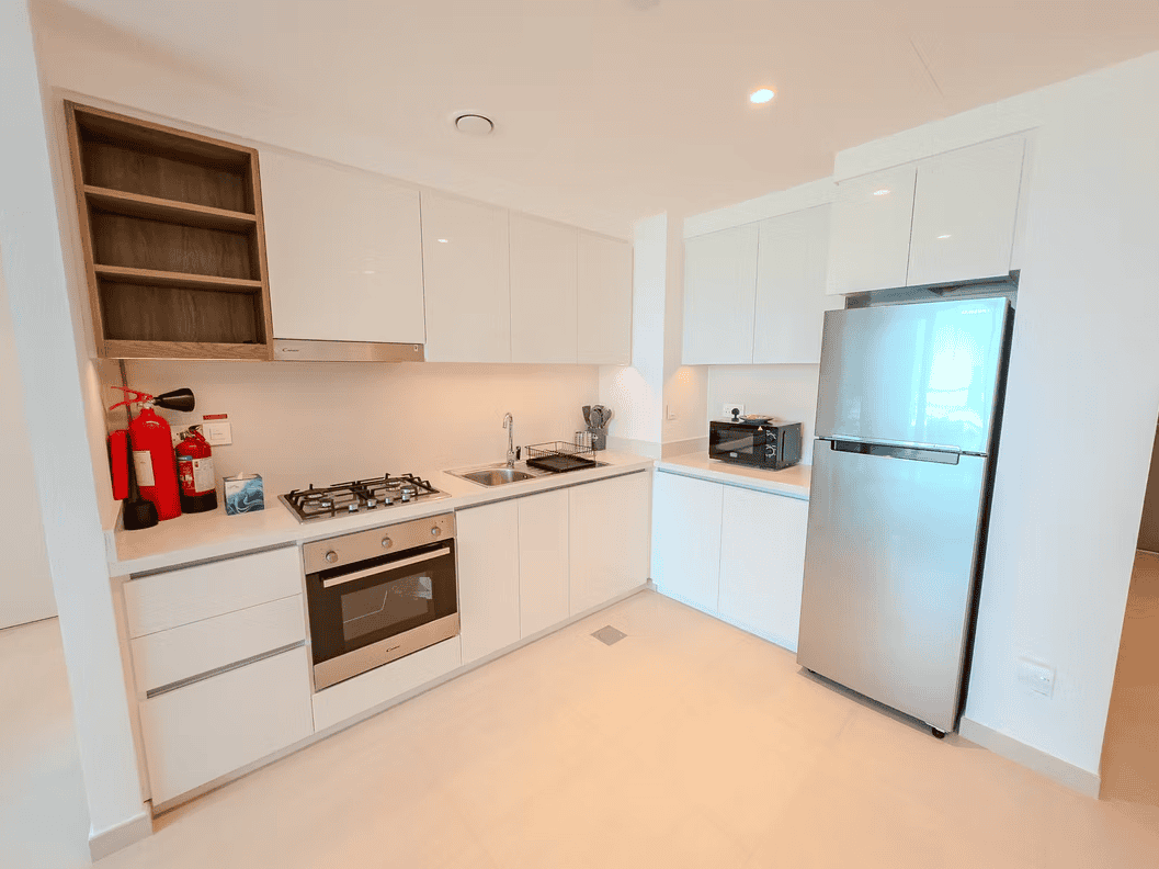 Dubai Zaa’beel Second Apartments have been designed with modern comfort and functionality in mind. The open-plan living and dining area flows seamlessly into a fully equipped kitchen, complete with contemporary appliances and all the essentials for cooking and entertaining. Large windows allow natural light to fill the space, highlighting the sleek décor and creating a welcoming, airy atmosphere. The bedroom provides a restful retreat with quality linens, while the bathroom is fitted with stylish fixtures. Additional amenities, including fast Wi-Fi, air conditioning, and in-unit laundry facilities, ensure a convenient, “ready-to-move-in” experience for both short and medium-term stays.