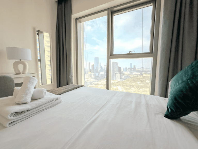 Residents also enjoy access to a range of premium building facilities that enhance urban living. The communal swimming pool offers a refreshing escape, while the fully equipped gym allows you to maintain fitness routines without leaving home. Landscaped leisure areas provide space for relaxation, and 24-hour security ensures peace of mind. Beyond the apartment, Za’abeel Second combines a residential vibe with city convenience, placing retail, cafés, and recreational spaces within easy reach. This 1-bedroom apartment presents a stylish, comfortable, and well-connected base for professionals, couples, or anyone looking to experience Dubai’s vibrant urban lifestyle. Whether staying for business or leisure, the apartment’s combination of modern interiors, panoramic views, and premium amenities makes it an ideal choice for any visitor to Dubai.