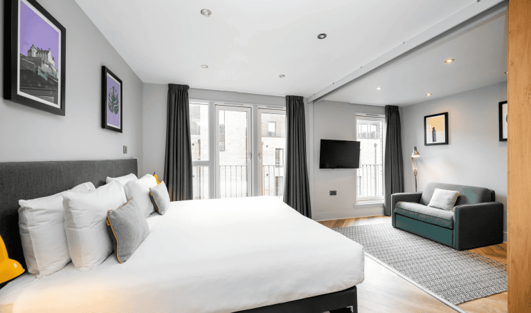 The Fountainbridge Aparthotel offers a stylish and flexible home base in the heart of Edinburgh, just a 10-minute walk from the city centre. Whether you choose a modern studio or a spacious one- or two-bedroom apartment, each unit is thoughtfully designed to provide a comfortable and inviting retreat after a day of exploring. Guests enjoy fully equipped kitchens, cozy lounge areas, and contemporary bathrooms, making this the perfect choice for both short visits and extended stays. The Fountainbridge Aparthotel places you right at the edge of some of Edinburgh’s most captivating sights: stroll down cobbled streets, pop into independent bookshops, explore art galleries, or discover hidden gems in local fashion boutiques. With so many options on your doorstep, every day in Edinburgh brings something new and exciting to experience.
