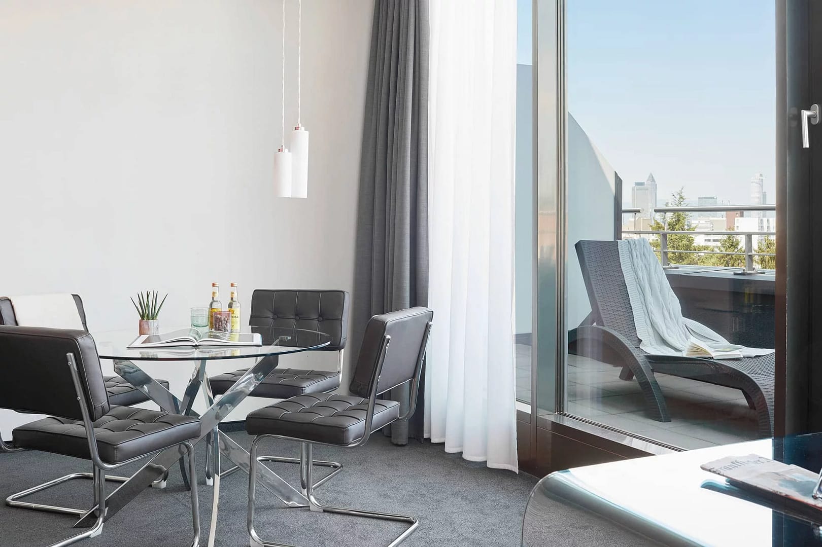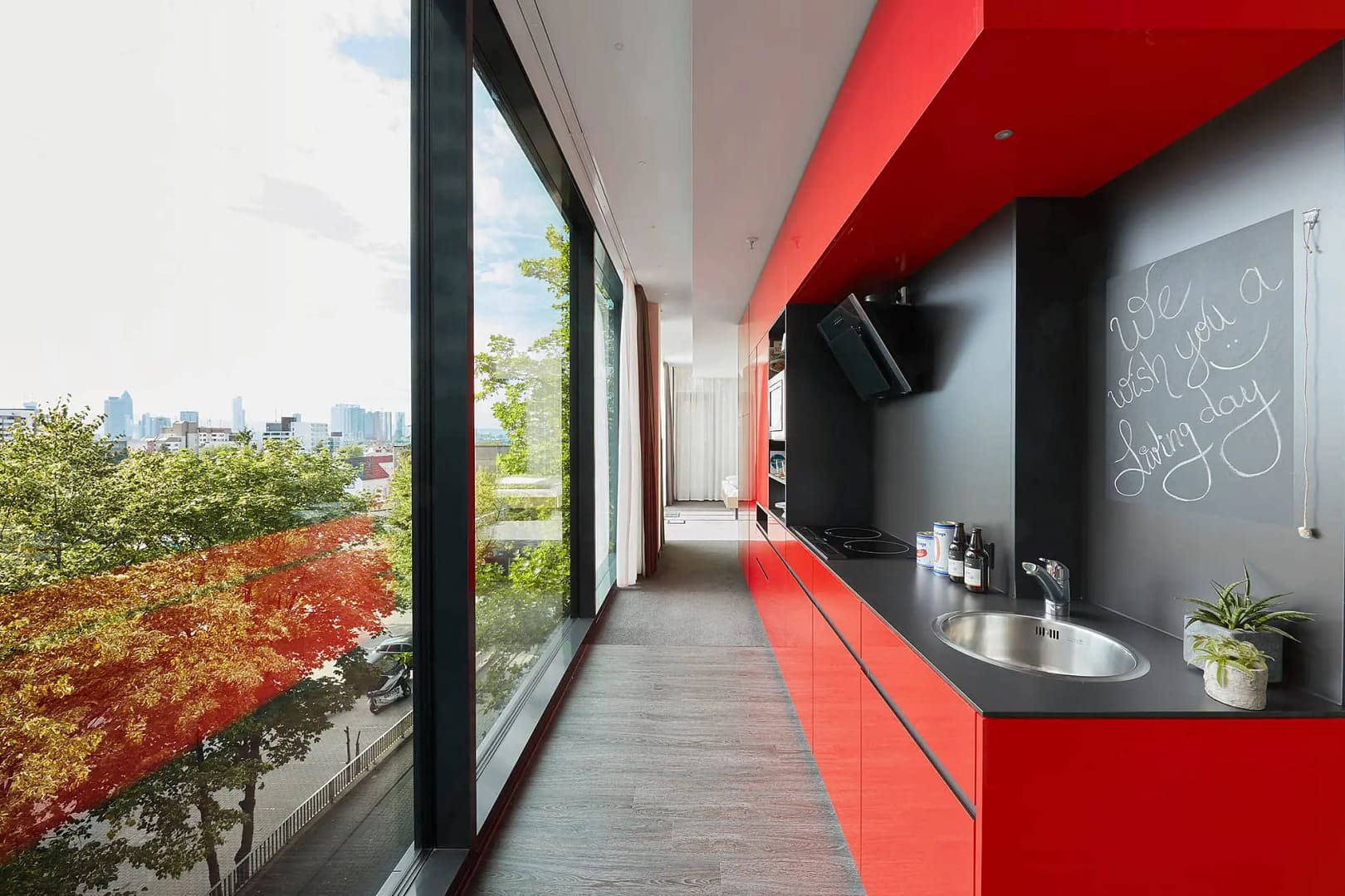 Frankfurt Gwinnerstrasse Apartments range from compact Studio L and Studio XL options, each thoughtfully designed with high-speed Wi-Fi, soundproofed windows, Smart TVs, and comfortable beds. Larger studios include fully equipped kitchenettes with hobs, dishwashers, microwaves, and coffee machines, allowing guests to prepare meals in the comfort of their own space, while the smaller units benefit from communal kitchens on each floor. All apartments provide weekly housekeeping, eco-friendly toiletries, and flexible check-in options, ensuring a convenient and comfortable stay for guests of all types.