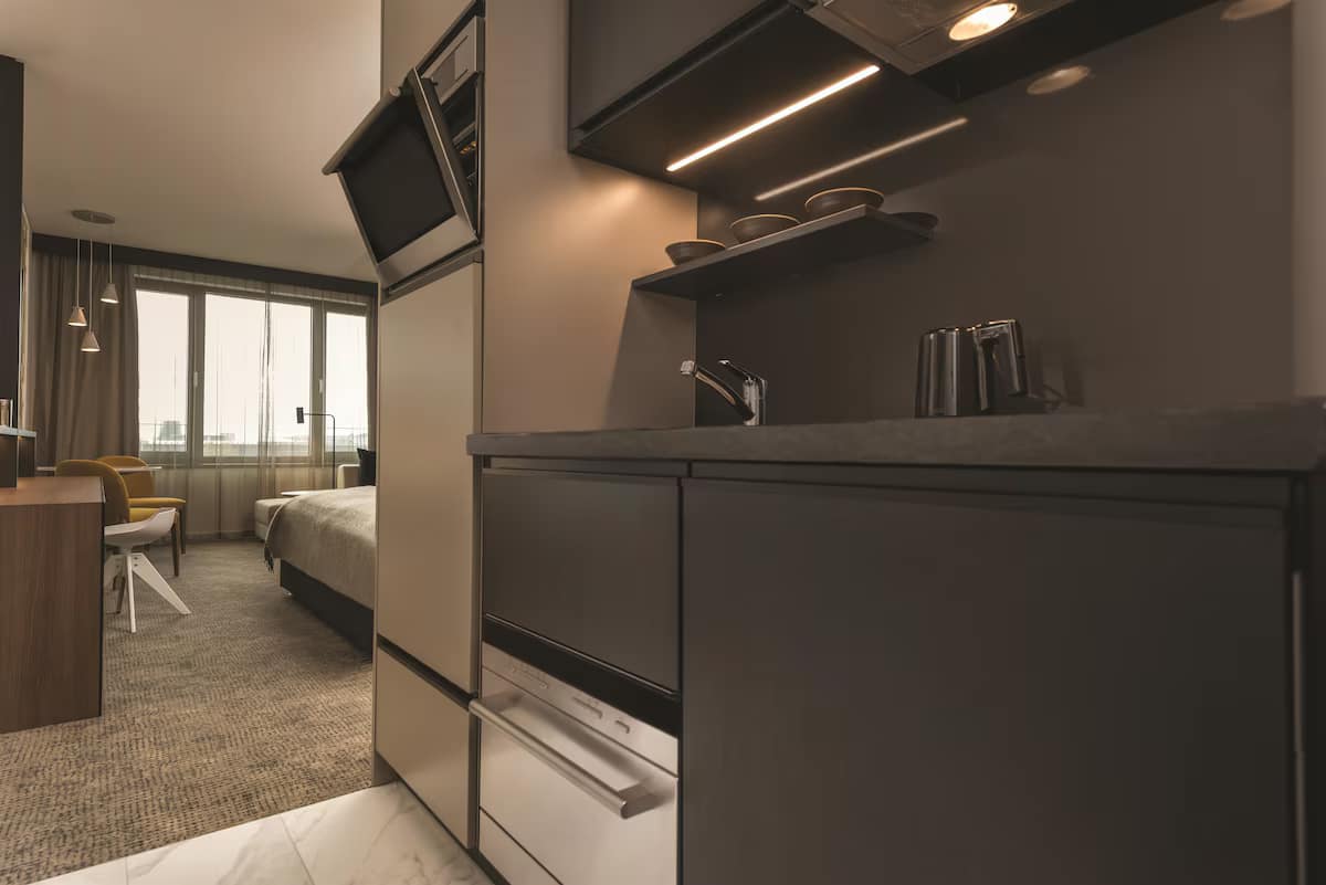 Business travellers will appreciate the aparthotel’s prime location close to Frankfurt’s financial district and major corporate venues such as Messe Frankfurt, Kap Europa, and the Congress Centre. Each apartment features a dedicated workspace and a quiet environment conducive to focused work or meeting preparation. Combined with excellent public transport links and an array of nearby dining and networking options, it makes for an ideal base for corporate stays. With its central setting, thoughtful amenities, and comfortable design, this aparthotel offers a sophisticated and convenient choice for experiencing Frankfurt at its best.