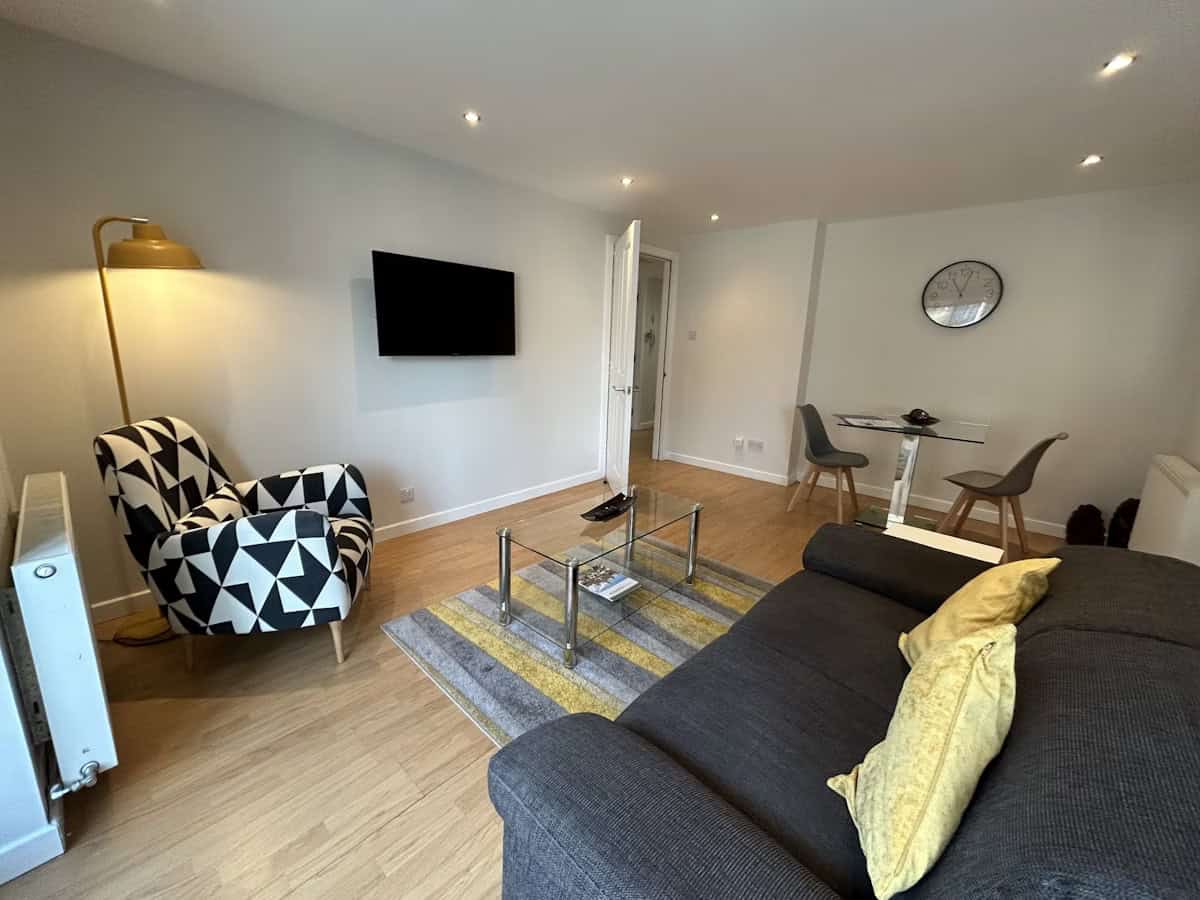 Glasgow Bell Street Apartments offer a modern and comfortable stay in the heart of the city’s historic Merchant City district. Ideal for corporate travellers and city visitors alike, these one-bedroom apartments are perfectly positioned at Glasgow Cross, overlooking the iconic Tolbooth Steeple. Each apartment features a spacious master bedroom, an open-plan lounge and dining area, and a fully equipped kitchen — providing the flexibility and comfort of home. The main bathroom, complete with a shower over the bath, is conveniently located off the hallway. Situated on an upper floor with lift access, the apartments are wheelchair accessible and include free Wi-Fi and underground parking, ensuring a hassle-free and enjoyable stay.