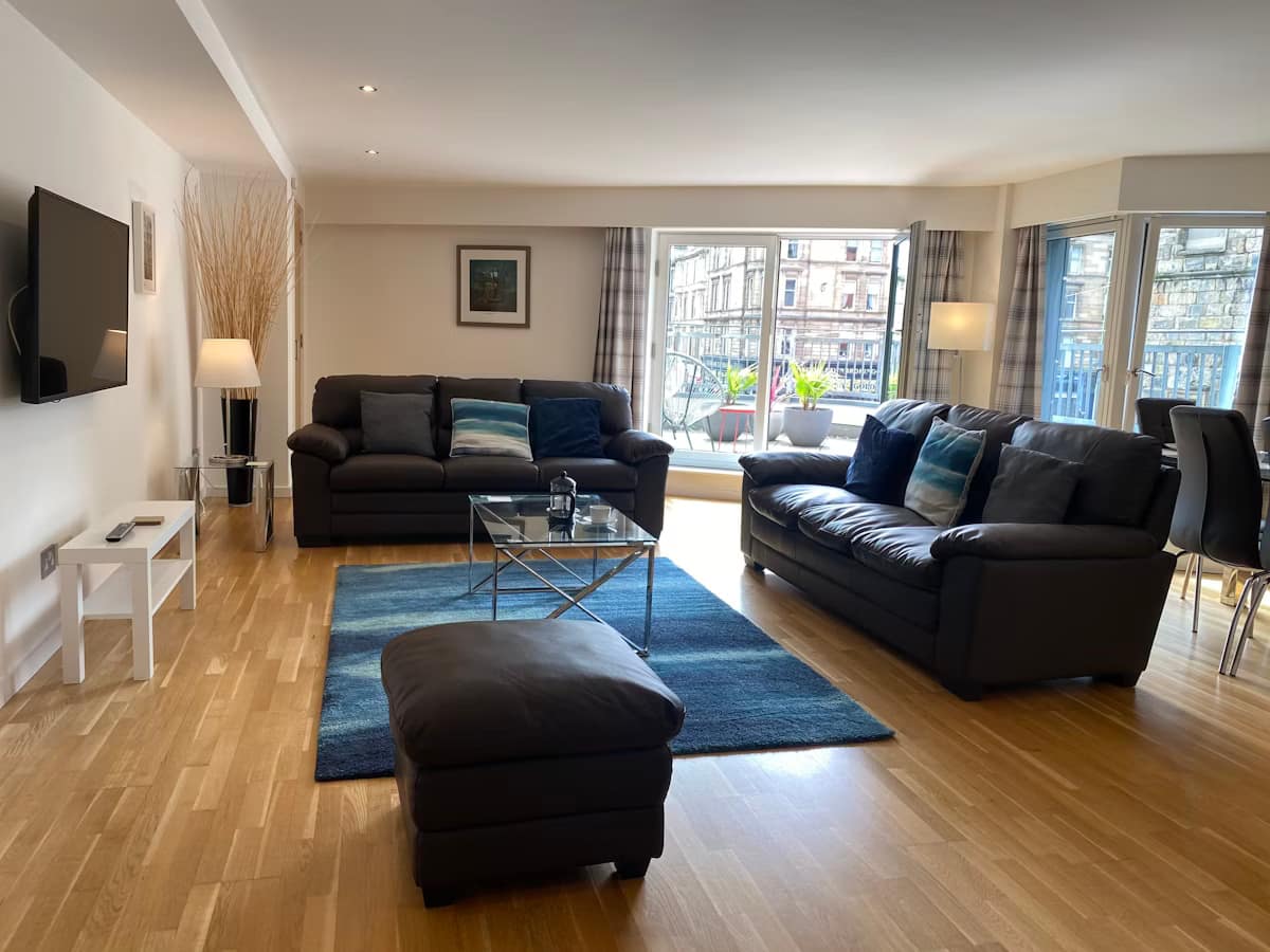 Glasgow Gallowgate Apartments offer a modern, spacious stay in the lively heart of the city’s Merchant City district. Situated in a contemporary building at Glasgow Cross and overlooking the historic Tolbooth Steeple, these serviced apartments place guests within easy reach of Glasgow’s best dining, entertainment, and shopping options. Step outside to enjoy an array of popular restaurants and bars, with Buchanan Street’s vibrant shopping precinct just a short stroll away. Each apartment at Glasgow Gallowgate Apartments features a king-size master bedroom, a second double bedroom, and a double sofa bed in the lounge, comfortably accommodating up to five guests. The open-plan design includes a lounge, dining area, and fully equipped kitchen, with all apartments offering private balconies to enjoy views over the city.