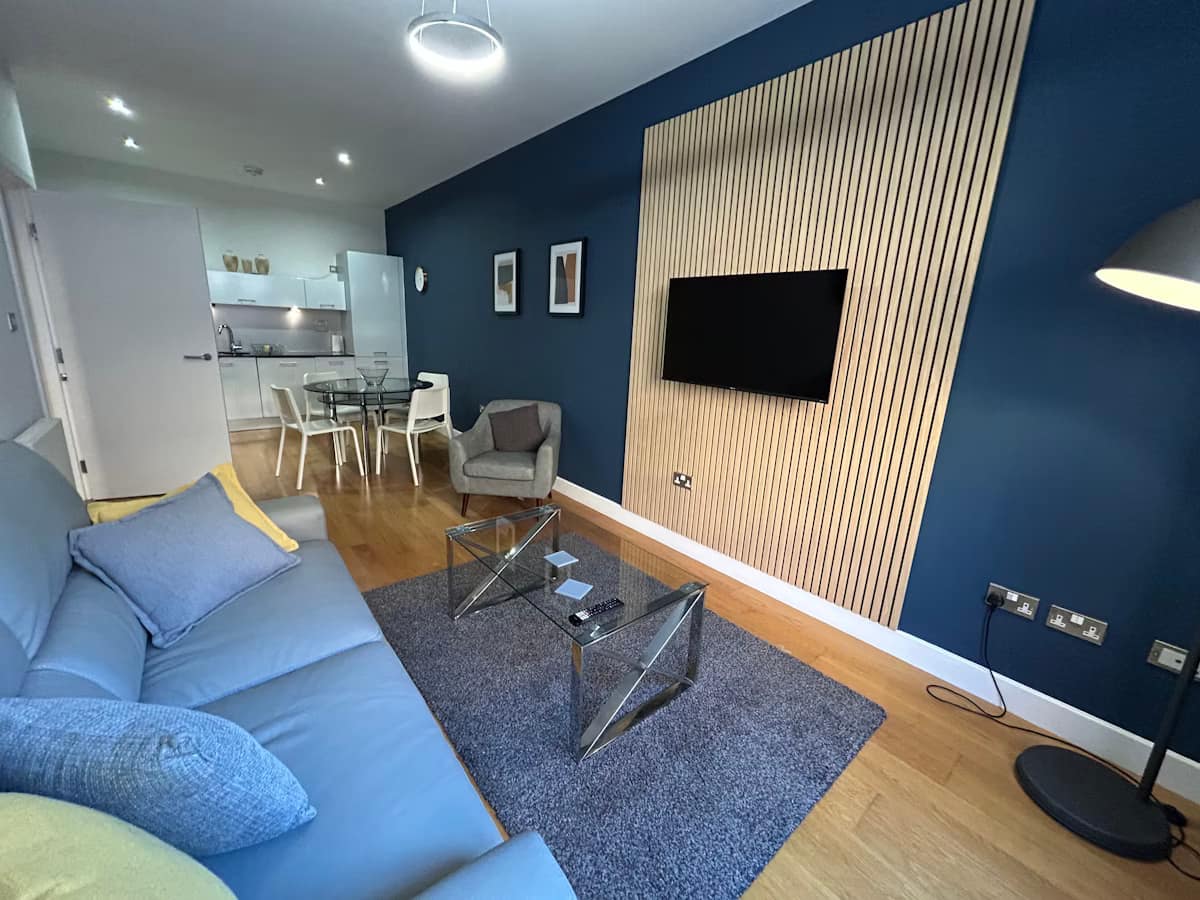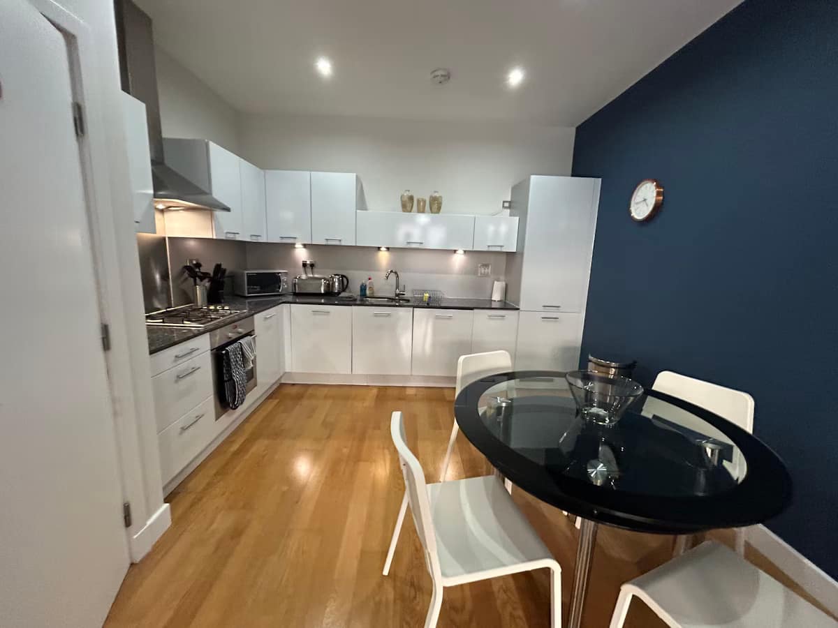 Glasgow Merchant City Apartments offer a stylish and comfortable base in the heart of one of the city’s most vibrant and historic neighbourhoods. Located on Ingram Street, these modern apartments are designed for both short and extended stays, accommodating up to two guests and providing all the essentials needed for an independent and relaxed visit. Each apartment features a spacious bedroom and an open-plan lounge, dining, and kitchen area overlooking the quieter rear side of the building, ensuring a peaceful retreat despite the central location. The living area includes a Freeview TV and DVD/CD player, while the fully equipped kitchen is fitted with everything needed for a comfortable stay. A bathroom with a shower over the bath, high-speed Wi-Fi, bed linen, towels, and a welcome pack with tea, coffee, and biscuits complete the thoughtful setup. Guests also benefit from lift access and secure underground parking.