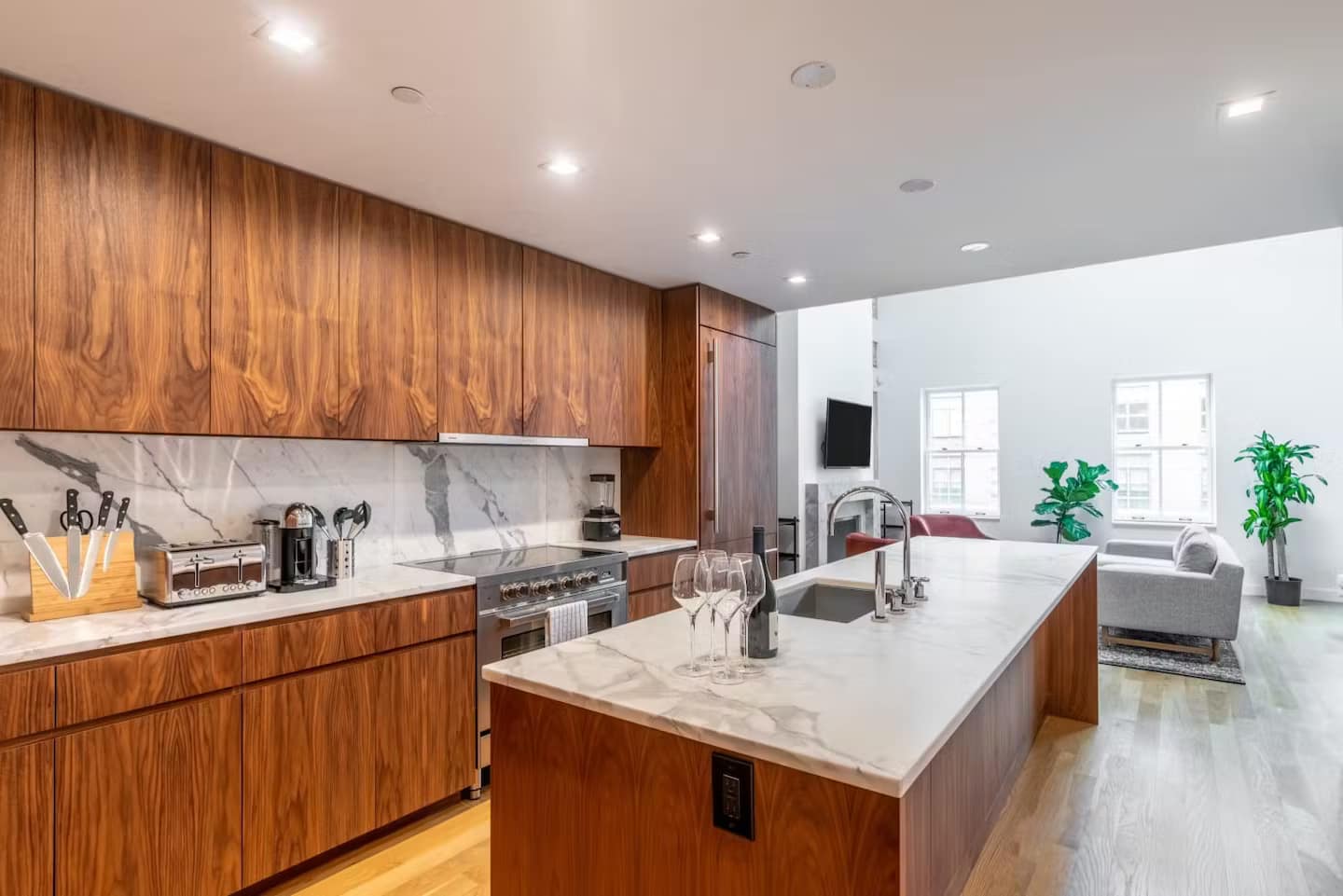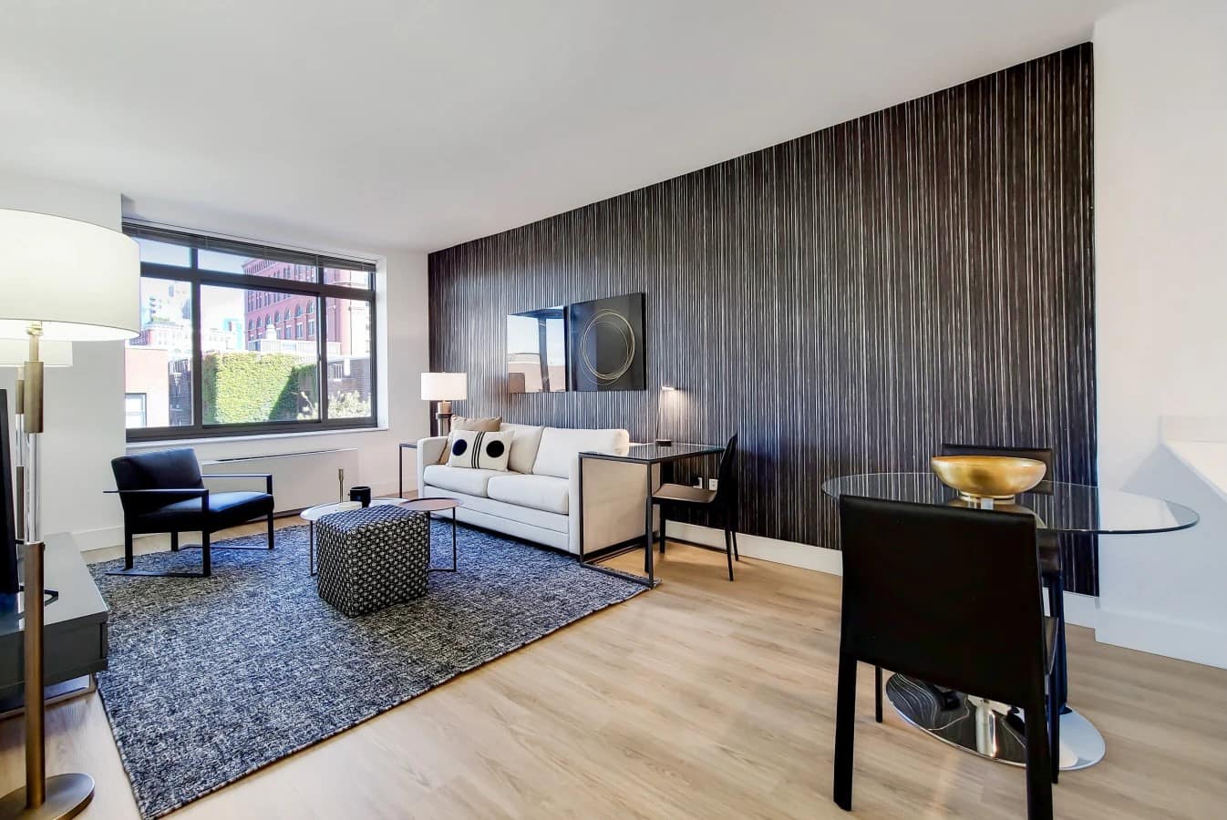 Situated in the heart of historic Greenwich Village, 600 Washington Street offers studio, one-bedroom, and two-bedroom apartments in a modern rental building—one of the few newly constructed in the neighborhood in over a decade. These spacious, thoughtfully designed residences feature high ceilings, oversized windows that bathe the space in natural light, and elegant real hardwood flooring. Each unit includes a fully equipped kitchen with stainless steel appliances, including a dishwasher and microwave, along with ample closet space and individually-controlled air conditioning for year-round comfort. All beds are queen size and come fitted with plush linens for a restful retreat.