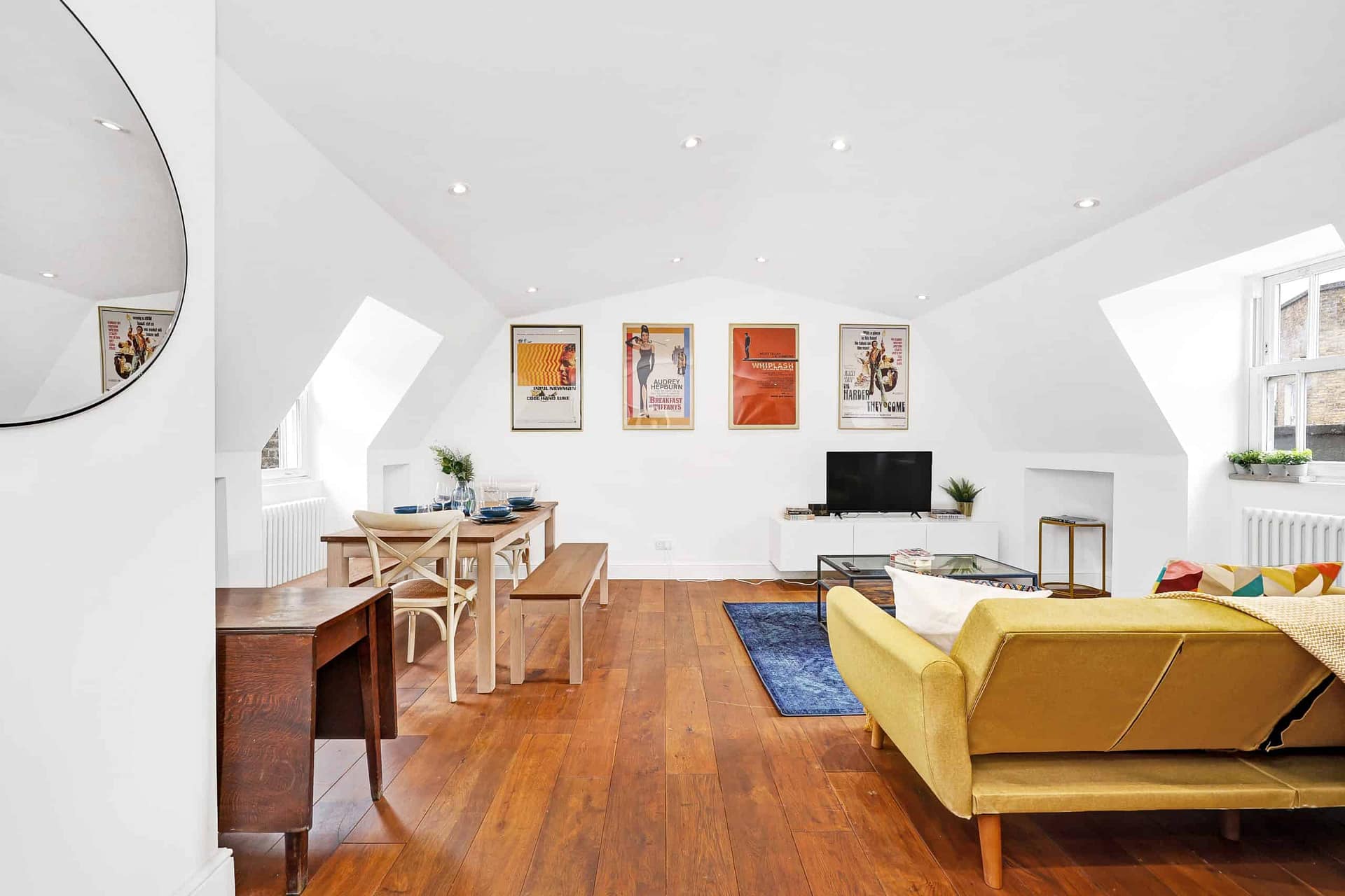 This 1 bedroom rooftop apartment directly is in an ideal location for those looking to explore the area or travel into the City. Hackney Broadway Market Loft has 1 bedroom with a balcony overlooking a small private roof terrace, with a fully equipped kitchen and bathroom also provided. A sofa bed and large inflatable mattress are provided for any extra guests. The large, sunlit living room offers a wonderful space to relax, with full Wi-Fi and TV being provided. The property is fitted with essential safety equipment including a smoke alarm, carbon monoxide alarm, fire extinguisher, and a first aid kit, ensuring peace of mind.