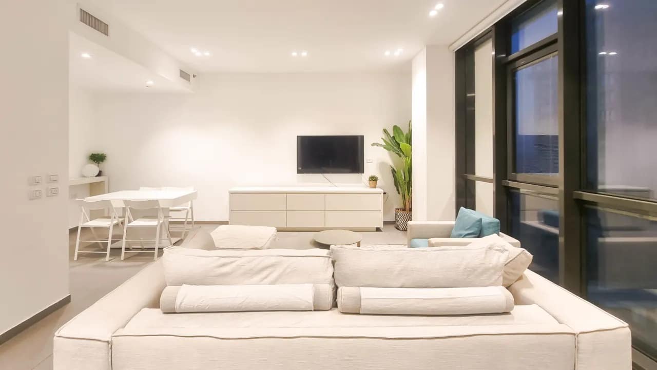 Nestled in the heart of central Tel Aviv, this apartment provides immediate access to the city’s vibrant life while remaining a calm sanctuary. Guests can stroll just two minutes to the golden sands of Banana Beach or wander to the bustling Carmel Market, where local cuisine, artisanal goods, and vibrant street life await. The surrounding streets are lined with charming cafés, restaurants, and boutique shops, giving you an authentic taste of Tel Avivian culture. From sunbathing during the day to exploring trendy neighborhoods and experiencing the city’s dynamic nightlife, this apartment serves as a perfect base for discovering everything Tel Aviv has to offer.