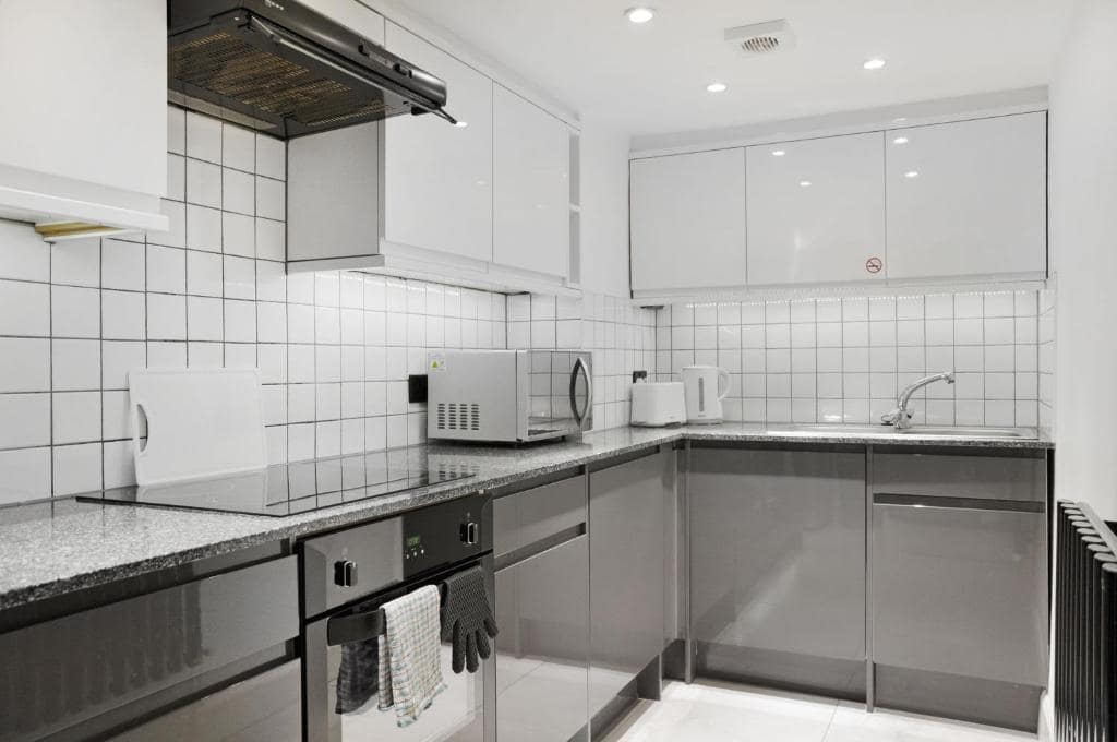 Each apartment is designed with comfort and functionality in mind, offering open-plan living areas, fully equipped kitchens, and modern bathrooms. Large windows bring in natural light, while tasteful furnishings and soft finishes create a calming interior environment. Guests can enjoy Smart TVs, high-speed Wi-Fi, and dedicated workspace options, making the apartments equally suited for extended business stays or weekend getaways. Whether you’re cooking at home or dining out in the neighbourhood’s diverse culinary spots, these apartments are designed to support both relaxation and day-to-day living. The quiet mews location adds a rare sense of privacy in a central area.