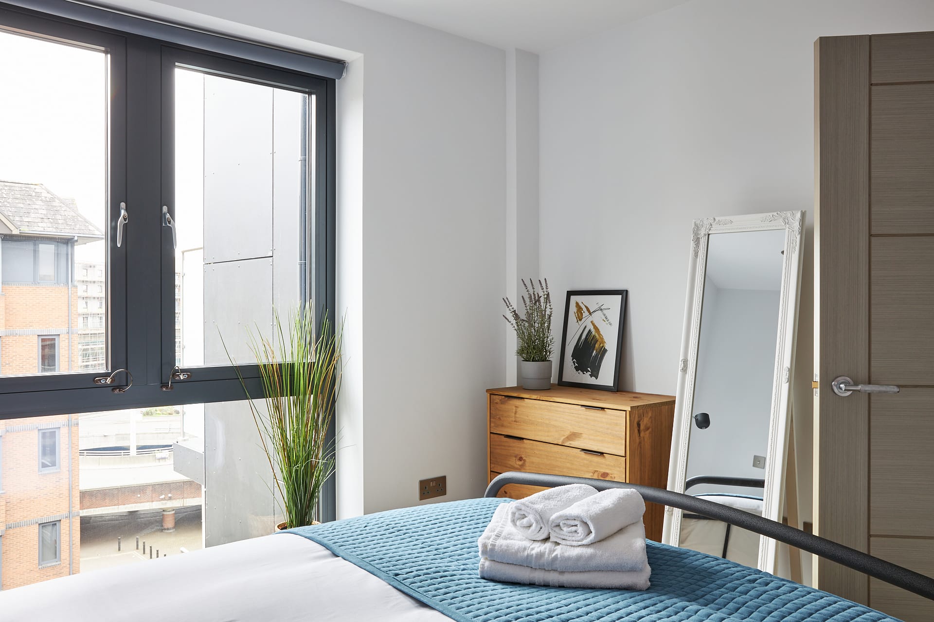 Inside, each apartment is designed with comfort and functionality in mind. Open-plan living areas come fully furnished with high-speed Wi-Fi, Smart TVs, and thoughtfully equipped kitchens for self-catering ease. Bedrooms offer comfortable beds and ample storage space, while modern bathrooms feature sleek fittings and walk-in showers. The layout and amenities support both everyday living and working from home, giving you space to relax or stay productive. Whether you’re a solo traveller or visiting with family, the apartments cater to a range of guest needs with flexible accommodation options and stylish interiors.