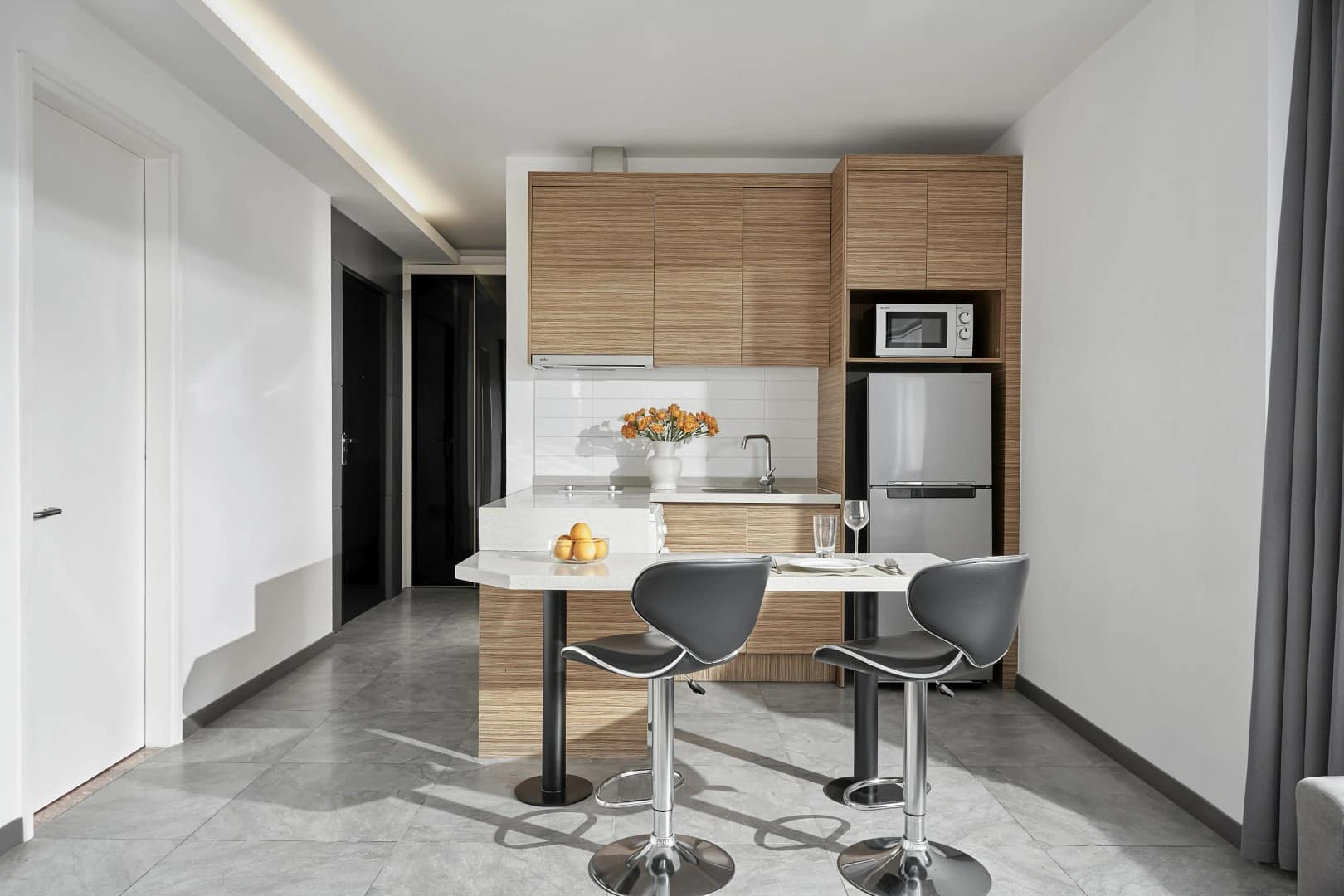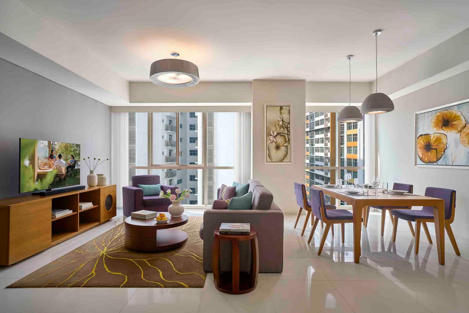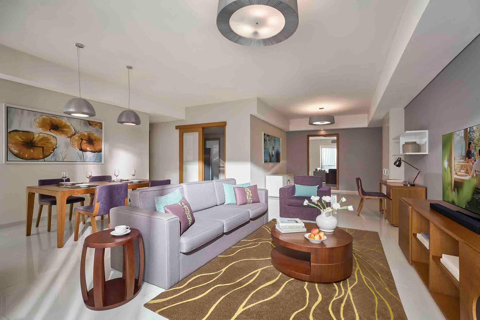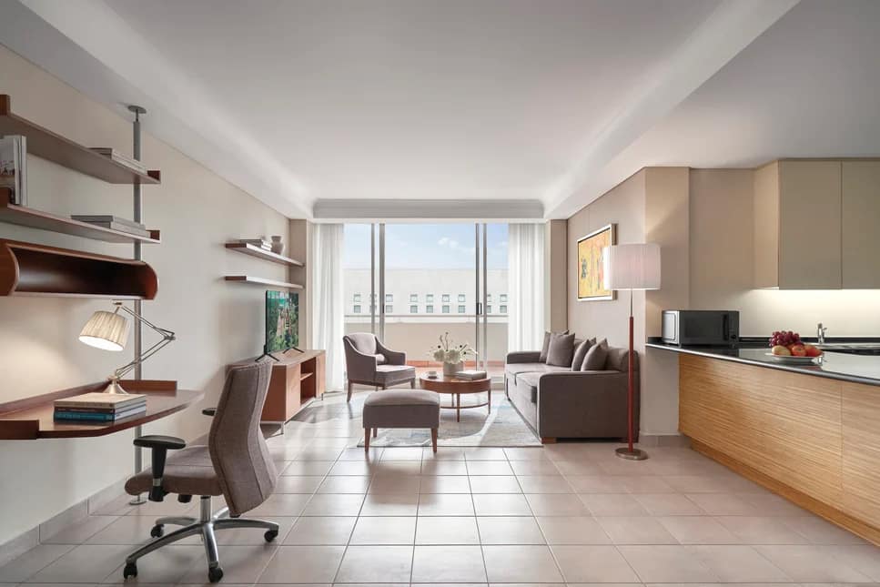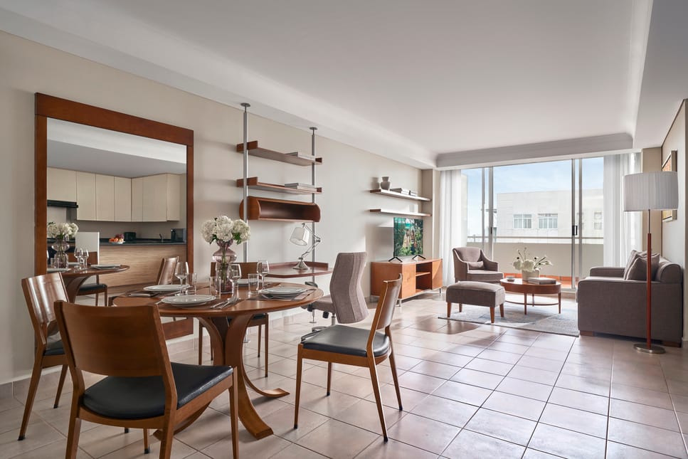 The aparthotel features a range of fully furnished serviced apartments designed to support both short stays and extended residencies, with layouts that include studios as well as larger one- and two-bedroom units. Each apartment is equipped with practical amenities such as high-speed Wi-Fi, air conditioning, fully equipped kitchens, and in-room laundry facilities, giving guests the flexibility and comfort of independent living. Spacious living and dining areas provide inviting spaces for relaxation, remote work, and everyday routines, while contemporary interiors and thoughtful design elements help create a welcoming, home-like atmosphere. These well-appointed living spaces cater to a wide range of traveller needs, from solo professionals and couples to families and longer-stay guests.